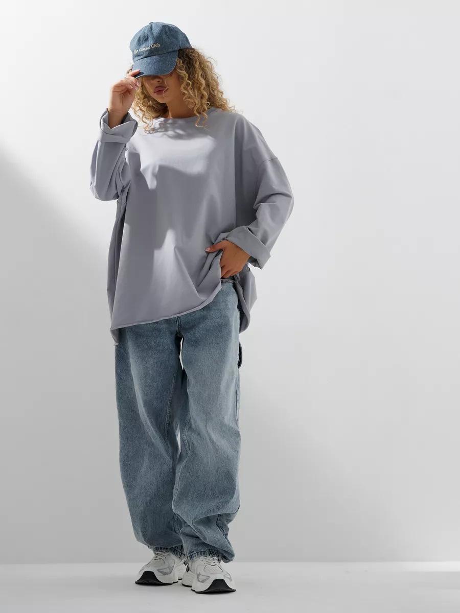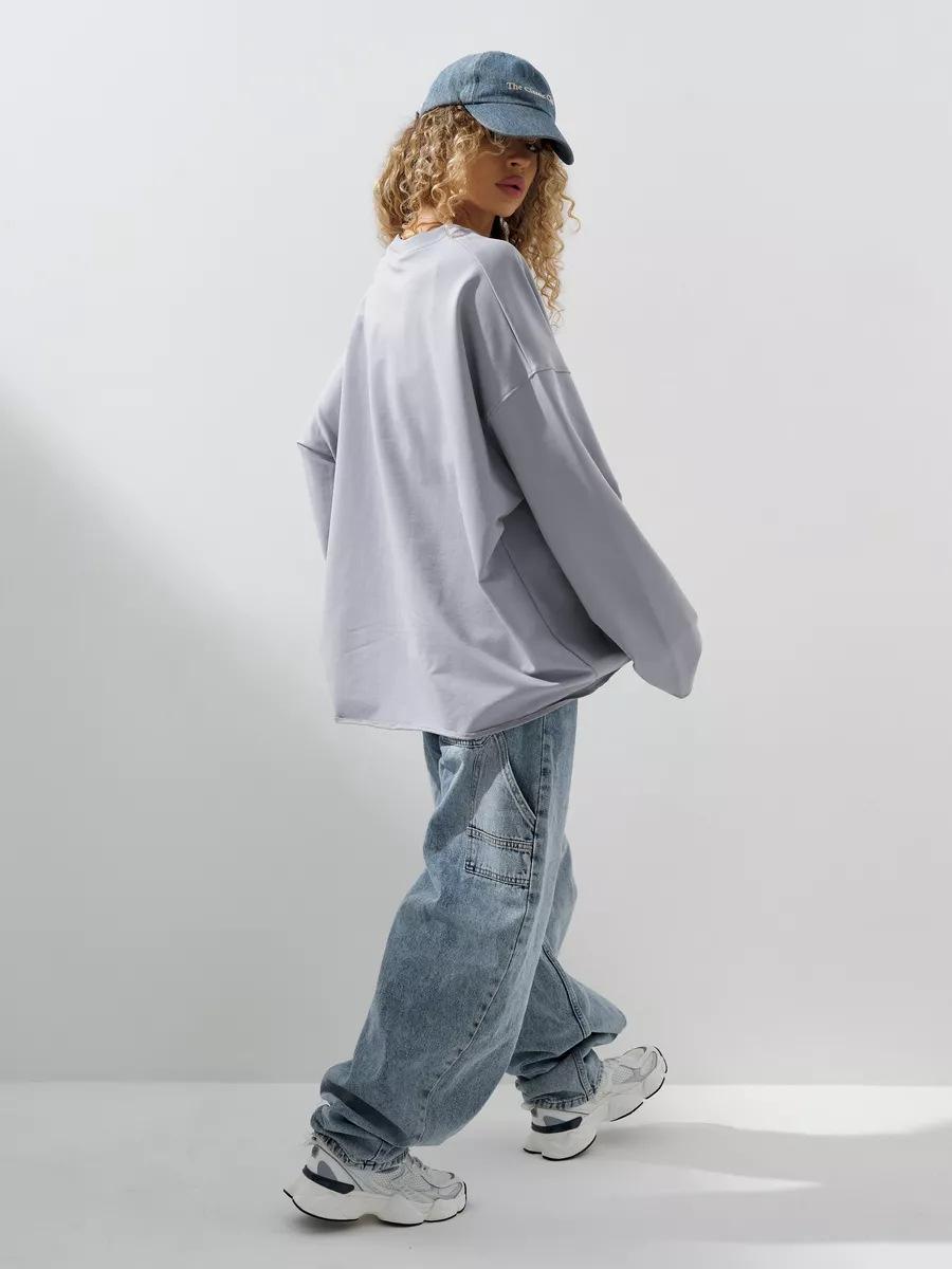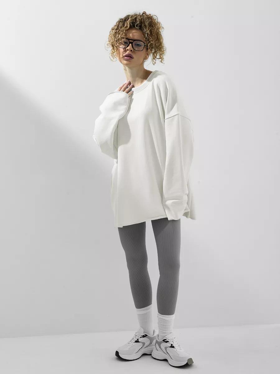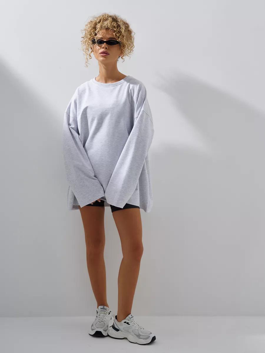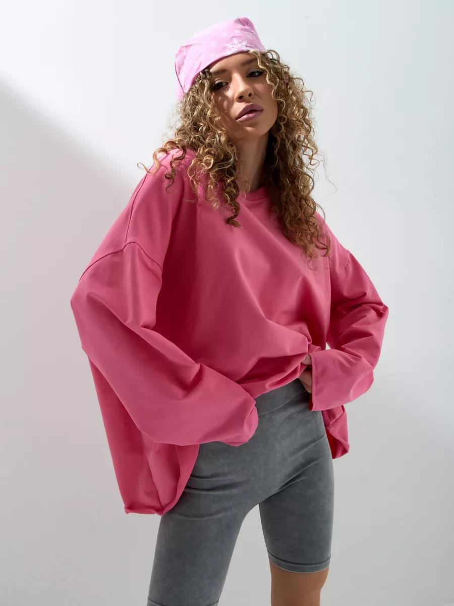 Europa e Estados Unidos transfronteiriça nova primavera e outono feminino solto cor sólida oversize gola redonda manga comprida casual camiseta moda suéter feminino