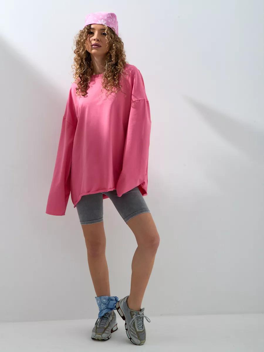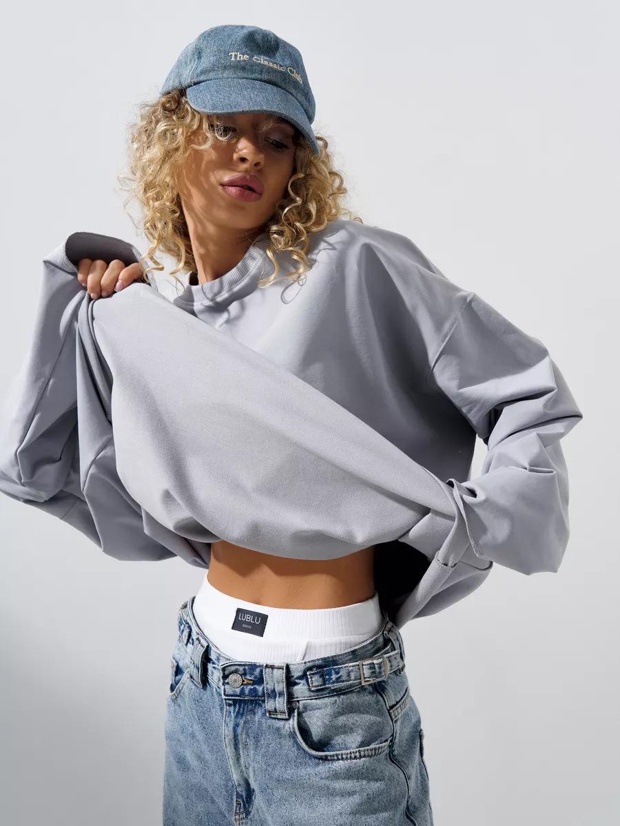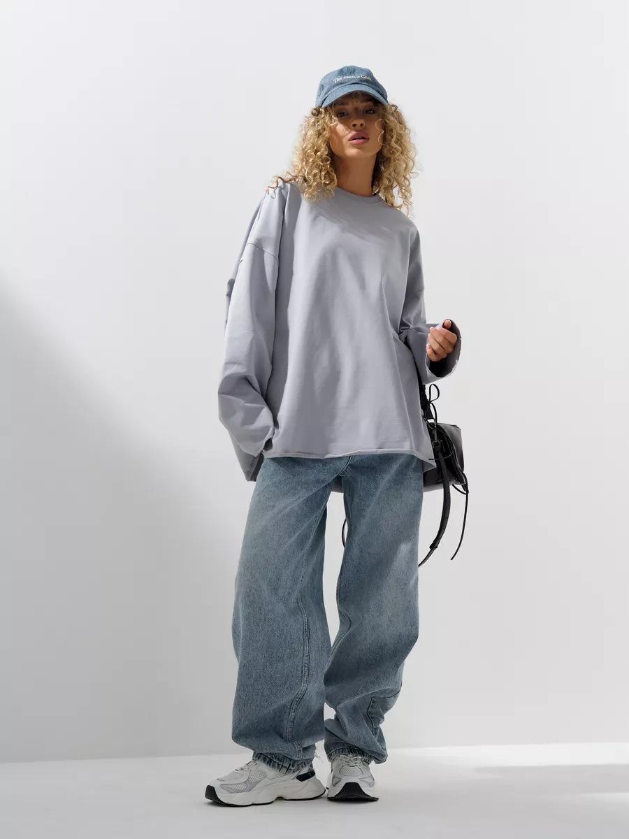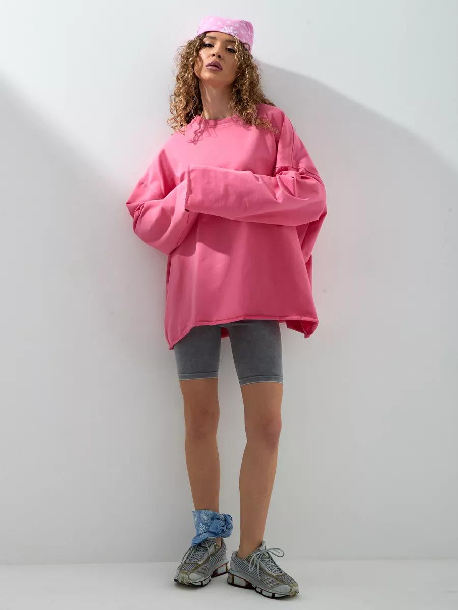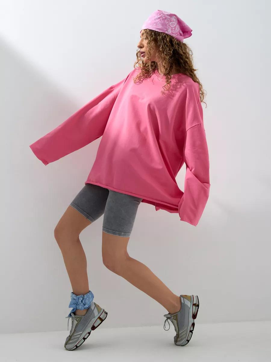 Europa e Estados Unidos transfronteiriça nova primavera e outono feminino solto cor sólida oversize gola redonda manga comprida casual camiseta moda suéter feminino
