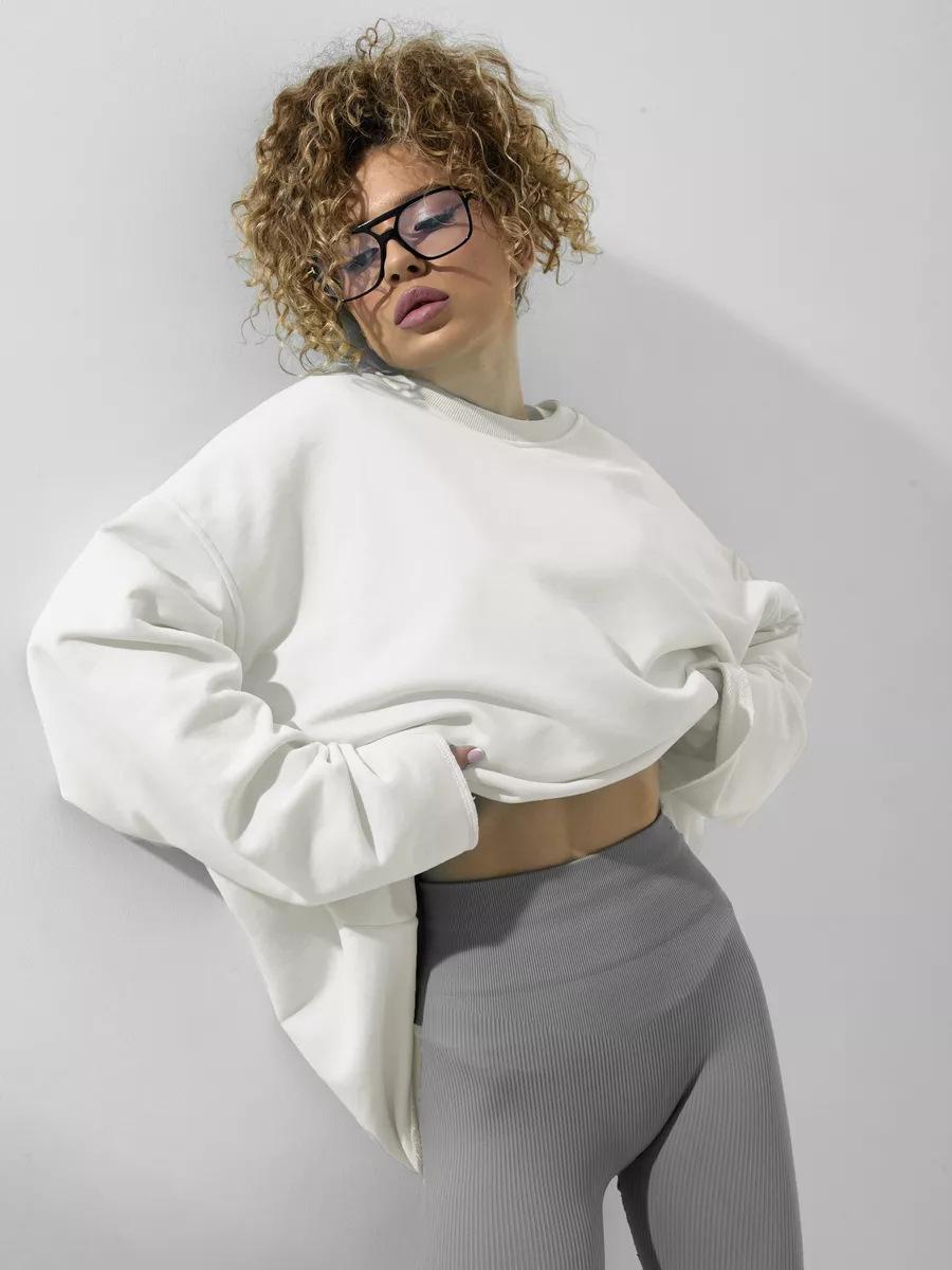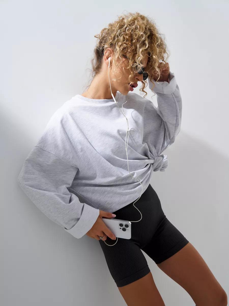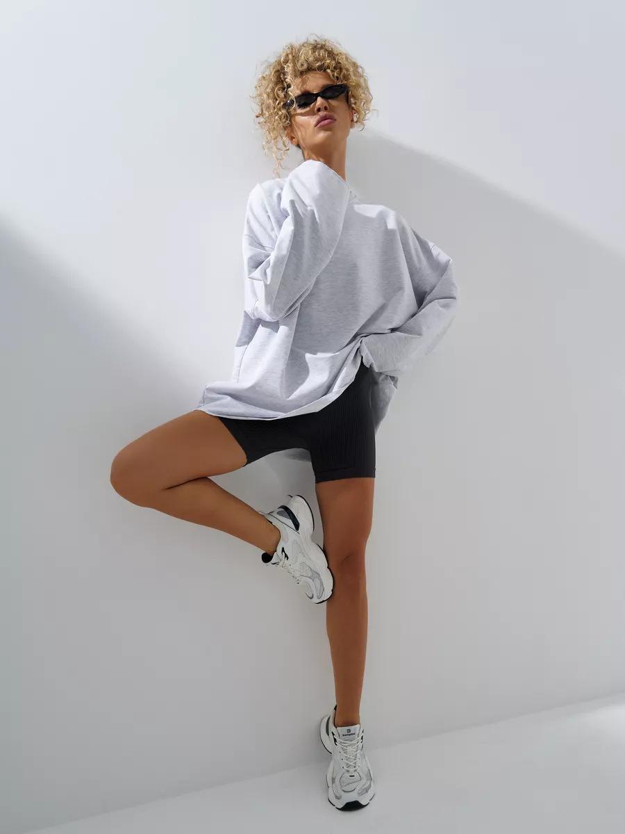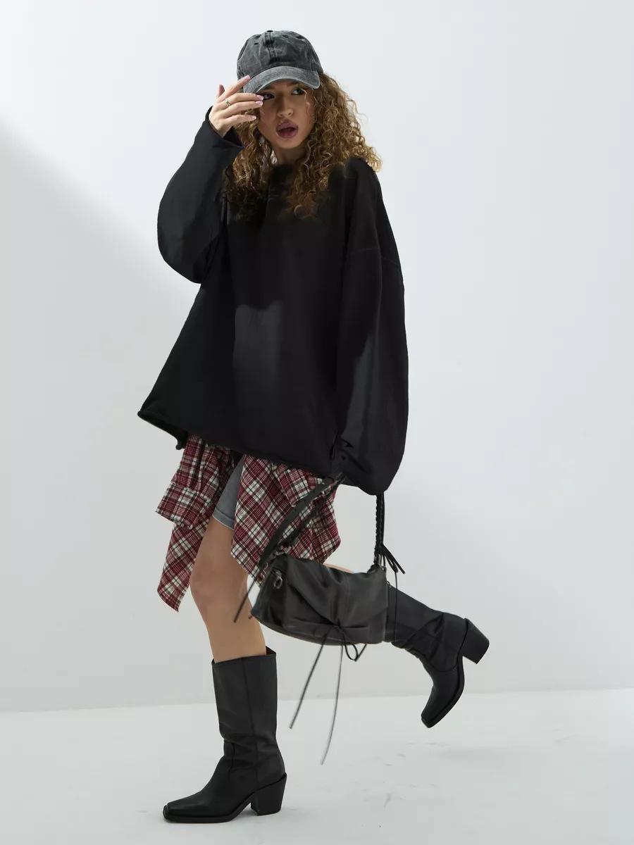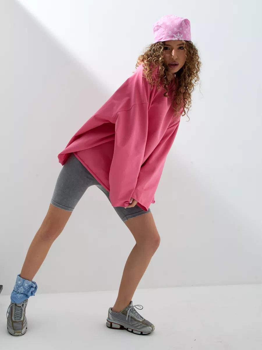 Europa e Estados Unidos transfronteiriça nova primavera e outono feminino solto cor sólida oversize gola redonda manga comprida casual camiseta moda suéter feminino
