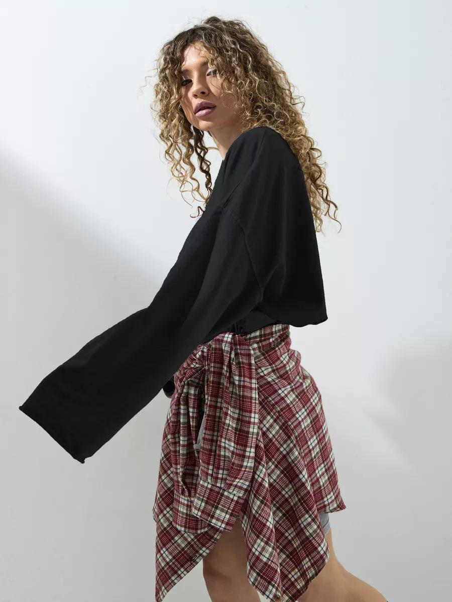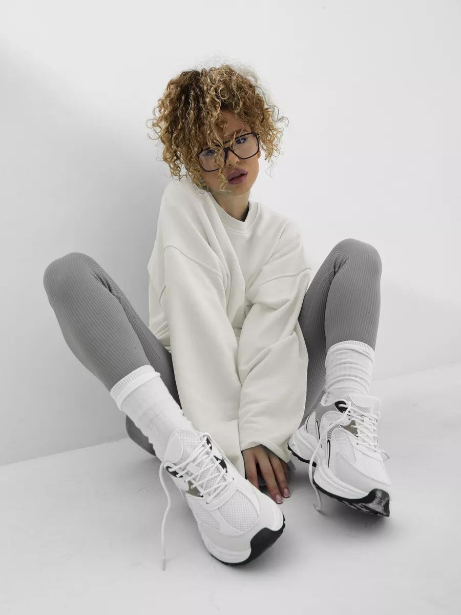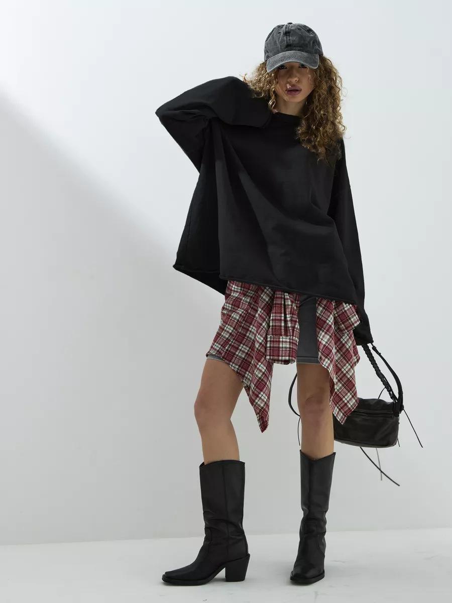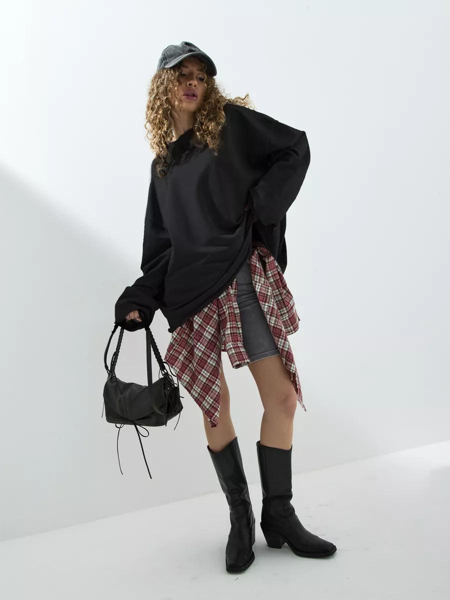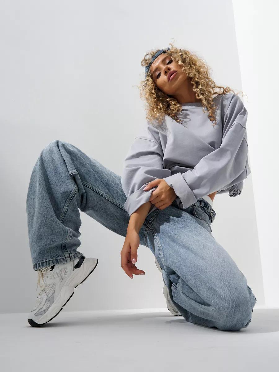 Europa e Estados Unidos transfronteiriça nova primavera e outono feminino solto cor sólida oversize gola redonda manga comprida casual camiseta moda suéter feminino