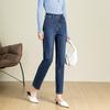 Calça jeans com cintura elástica, calça elástica com forro de lã, outono e inverno 2023, nova calça lápis pequena, calça skinny slim
