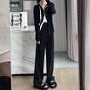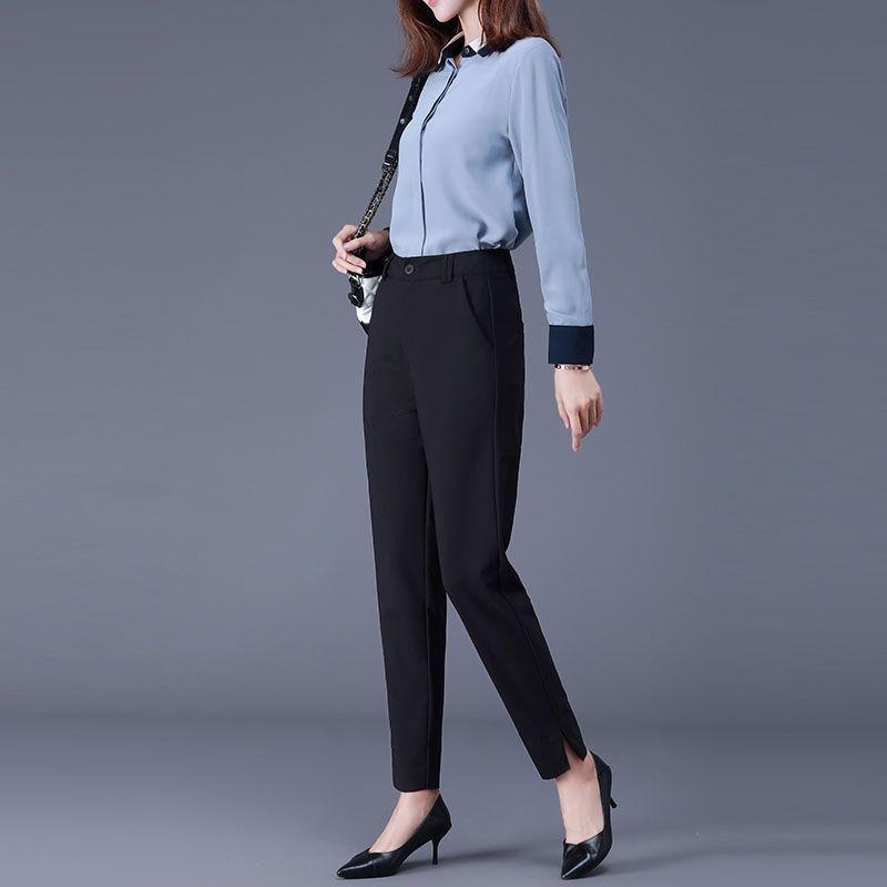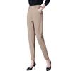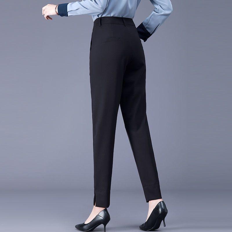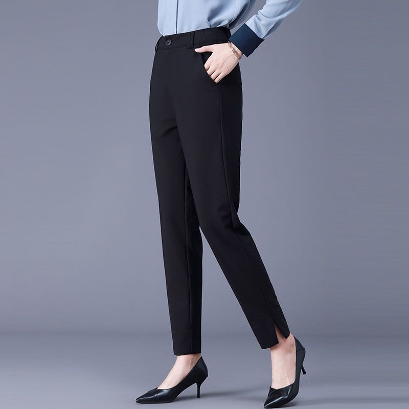 Calças Femininas 2024 Primavera, Verão e Outono Novo Estilo, Calças Cropped Cor Damasco, Ajuste Slim, Calças Sociais Casuais com Fenda Lateral, Cintura Alta, Emagrecimento