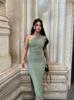 AC022 Europeu e americano 2024 verão novo feminino cor sólida um ombro sem mangas plissado fenda elegante vestido