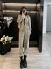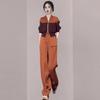 Terno casual feminino transfronteiriço europeu e americano, cor sólida, manga comprida, capuz, cardigan, bolso, suéter, calças de elastômero, conjunto de duas peças de comércio exterior