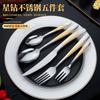 Terno de mesa de diamante estrela de aço inoxidável transfronteiriço, faca de bife, garfo e colher, cabo banhado a ouro, caixa de presente, sobremesa ocidental, cinco peças, terno