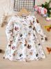 Comércio Exterior Ins Vestido Infantil de Menina Estampa Animal Desenho Animado Completo Gola Redonda Manga Longa Estilo Princesa