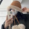 Chapéu de palha de pele de coelho de imitação de neve de outono e inverno, aba grande, moda, chapéu de bola de pele com forro de lã de alta qualidade, proteção de ouvido de lã, chapéu de malha quente