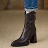 Botas Martin de salto grosso e bico fino femininas de couro macio 2024 Novas botas de tornozelo de salto alto e bico fino para outono e inverno