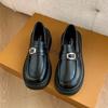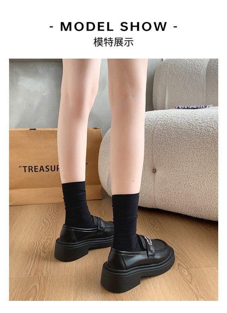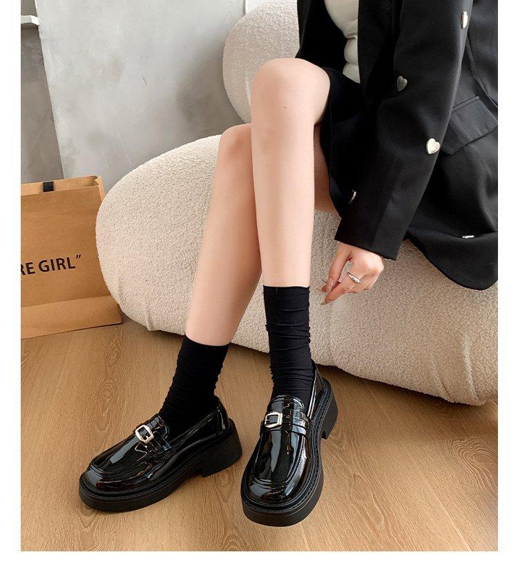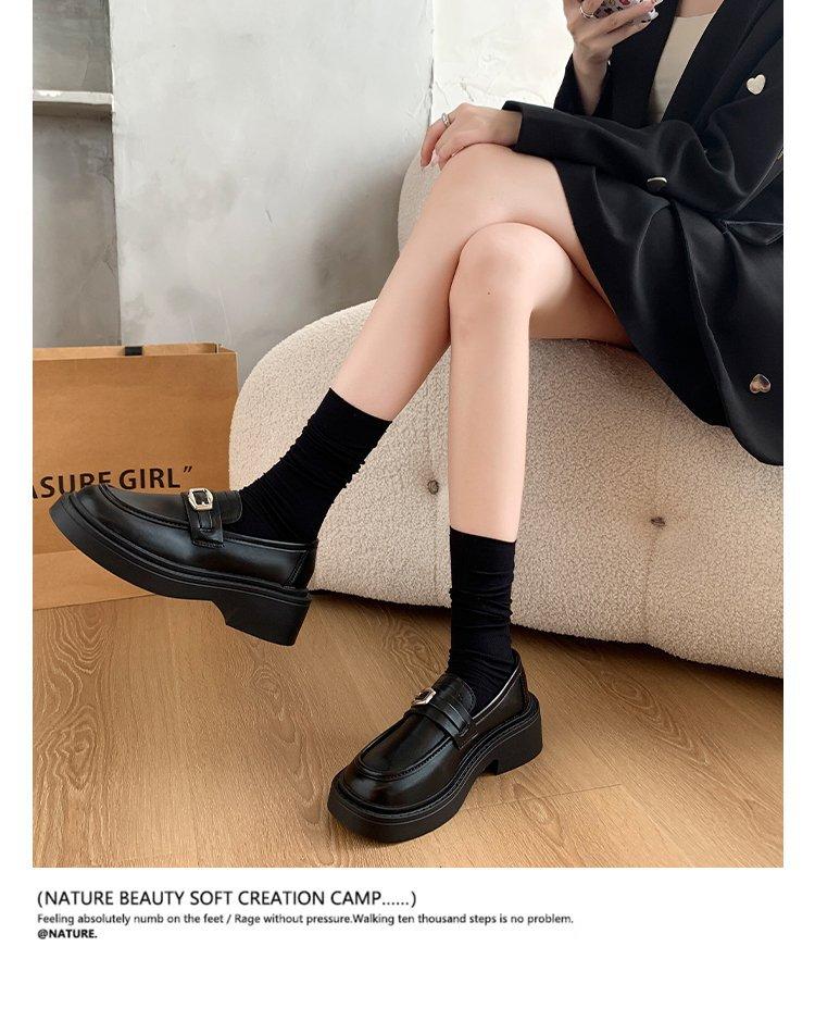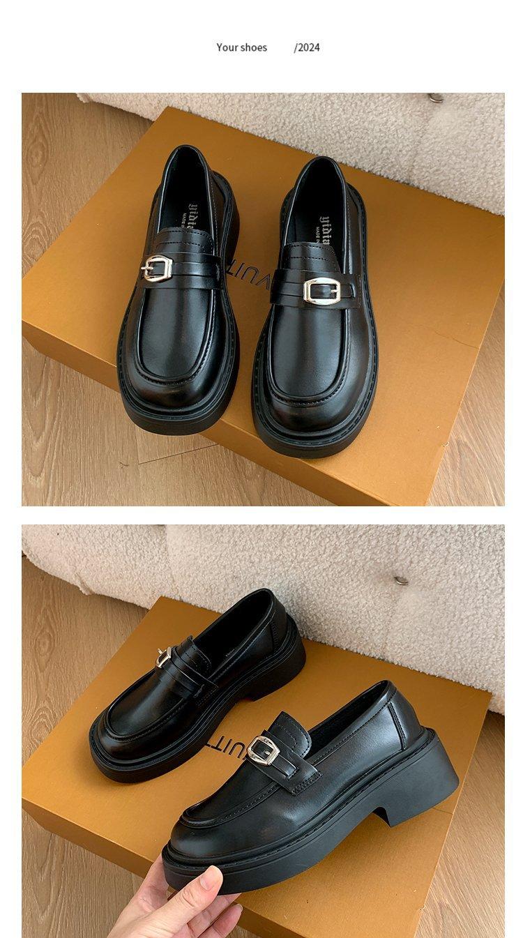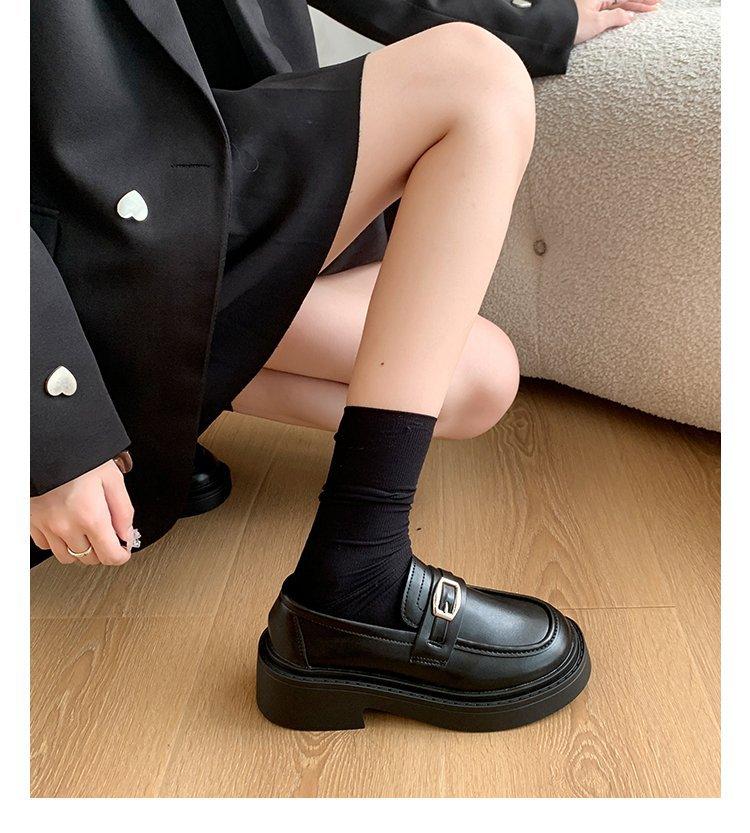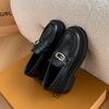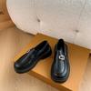 Mocassins Slip-On Pretos para Mulheres 2025 Outono e Inverno Novo Estilo Britânico Retrô Solado Grosso Versátil Sapatos de Couro Pequenos Modernos
