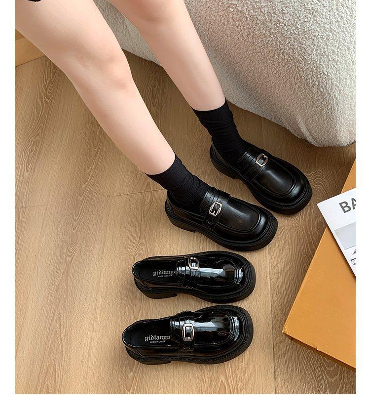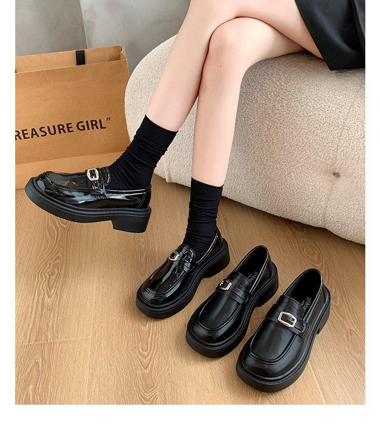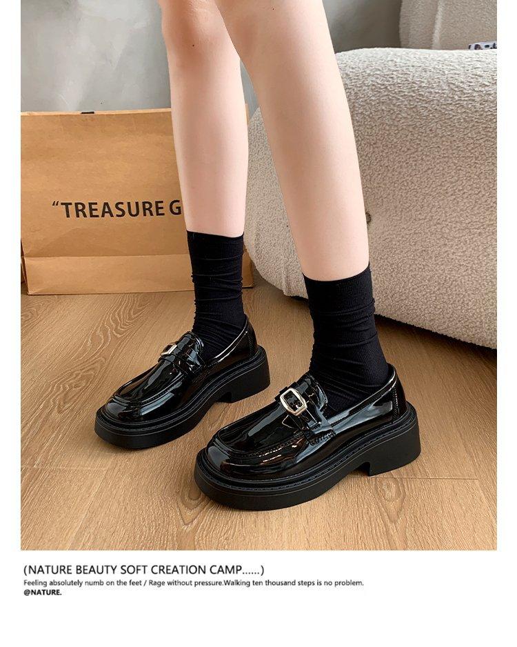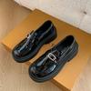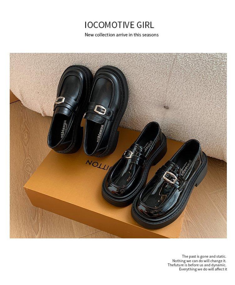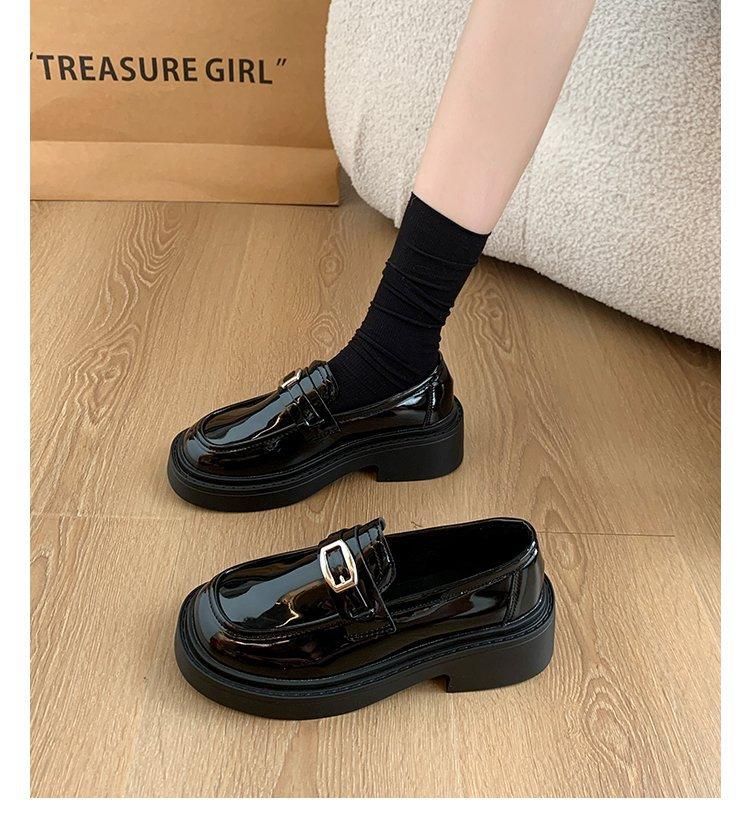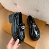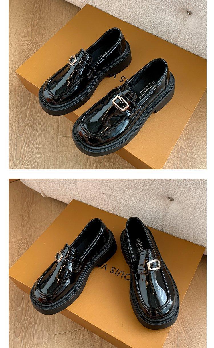 Mocassins Slip-On Pretos para Mulheres 2025 Outono e Inverno Novo Estilo Britânico Retrô Solado Grosso Versátil Sapatos de Couro Pequenos Modernos