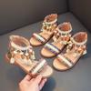 Sandálias Femininas Verão 2025 Nova Moda Estilo Coreano Sola Macia Sapatos de Princesa Crianças Médias e Grandes Estilo Étnico Sapatos Romanos Infantis
