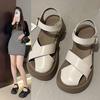Sandálias de Salto Alto Grosso de Bico Aberto para Comércio Exterior 2025 Verão Novo Estilo Retrô Vazado Sapatos Femininos com Fivela Sapatos Romanos