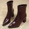 Botas de tornozelo pontiagudas femininas 2024 outono e inverno elegantes botas Martin elegantes de alta qualidade salto grosso não cansado salto alto botas finas