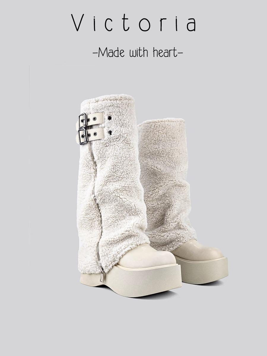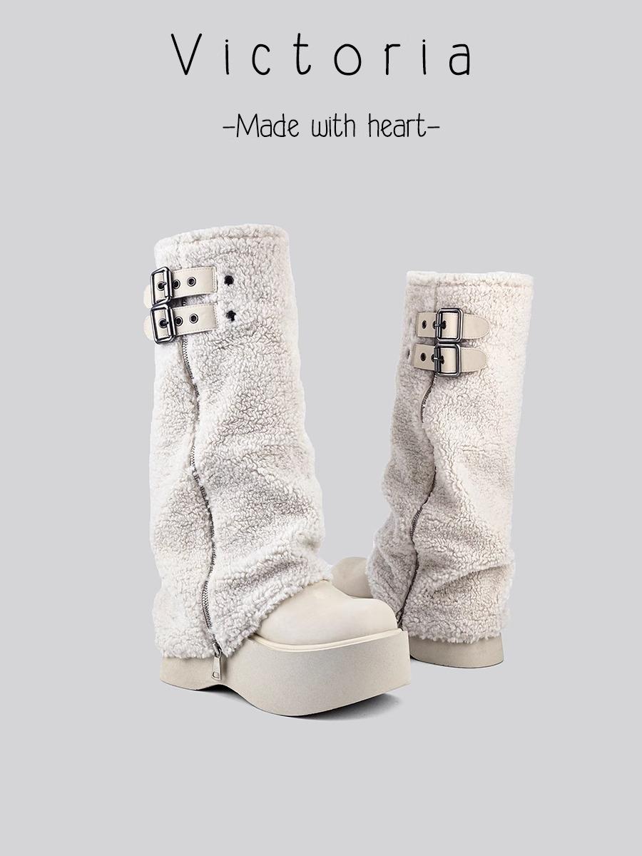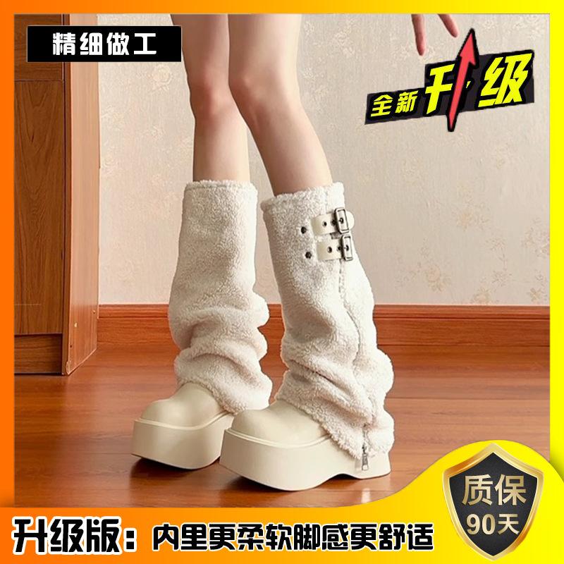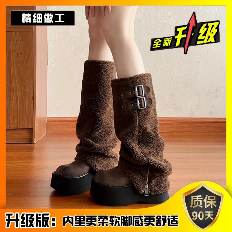 Meias empilhadas Meias Fundo grosso Mao Mao Calças Botas Fivela de cinto Manga Cabeça grande Altura Aumentando Botas 2024 Inverno Novo
