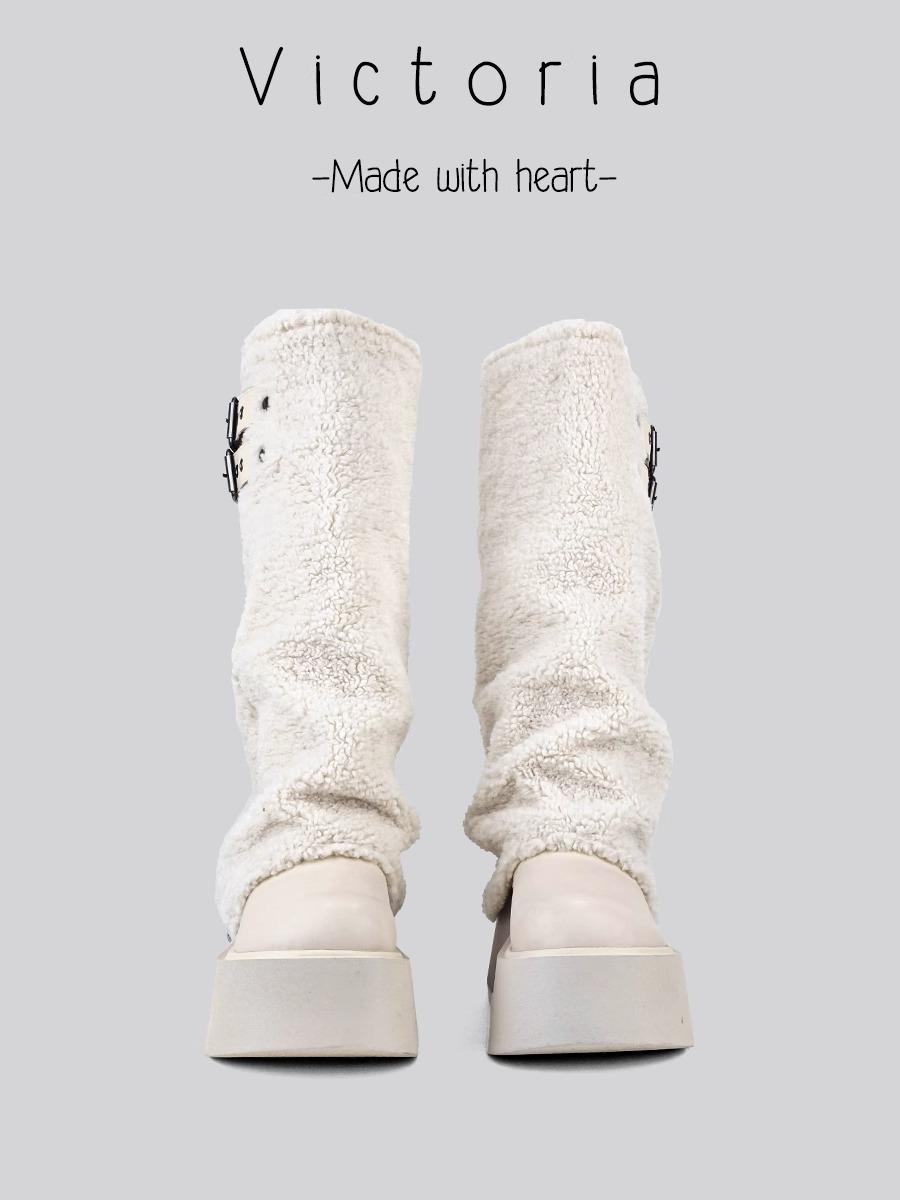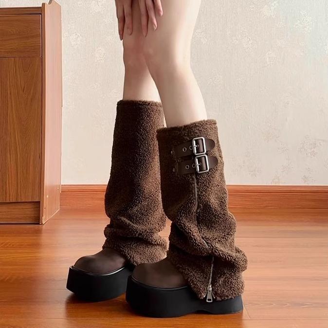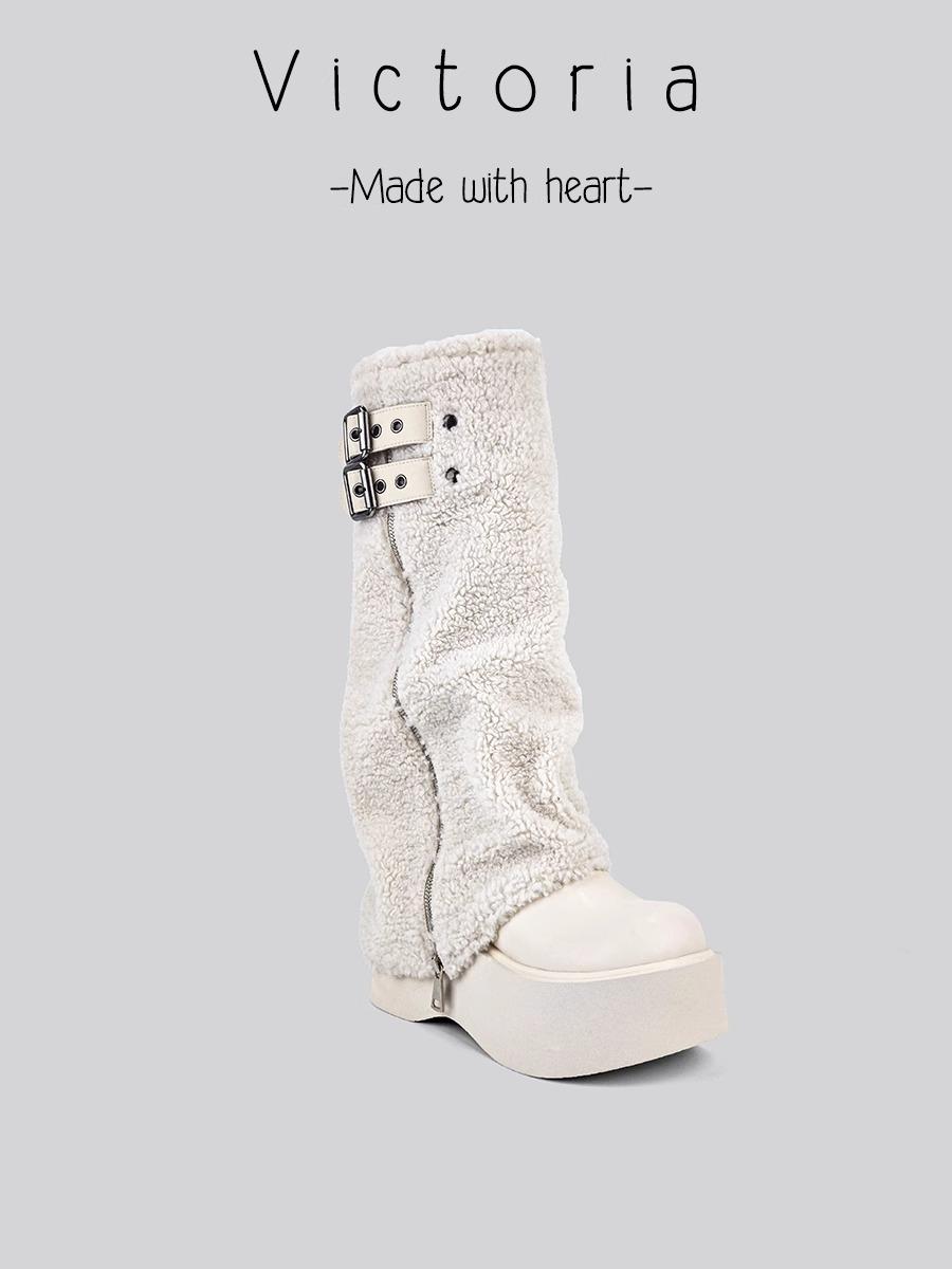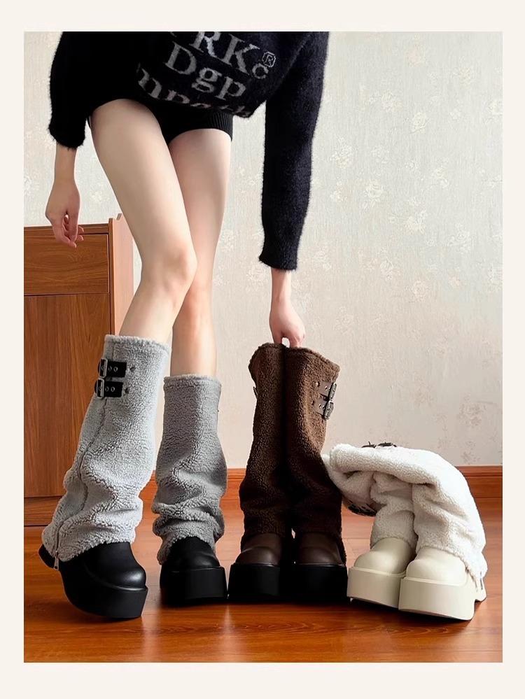 Meias empilhadas Meias Fundo grosso Mao Mao Calças Botas Fivela de cinto Manga Cabeça grande Altura Aumentando Botas 2024 Inverno Novo