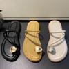 Toe Slippers Feminino 2024 Verão Novo Bico Redondo Estilo Coreano Design de Nicho Casual All-match Sandálias de Praia