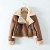 Outono e Inverno Europeu e Americano Roupas de Fã de Cavaleiro Europeu e Americano Casual Gola de Pele Ajustado Espessado Jaqueta Curta Feminina Jaqueta de Couro