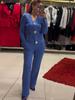 Outono 2024 Novos europeus e americanos Amazon Novo Casual Decote em V Manga comprida Slim-fit Top Calças de perna larga Conjunto de duas peças