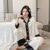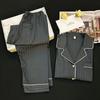 Pijama de Comércio Exterior Transfronteiriço para Mulheres, Cardigã Fino Plus Size, Conjunto de Manga Longa em Seda Gelo, Roupa de Casa Solta em Imitação de Seda