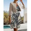 Cross-Border Europeu e Americano Novo Top de Manga Comprida Retro Estampado + Saia de Comprimento Médio Terno de Duas Peças