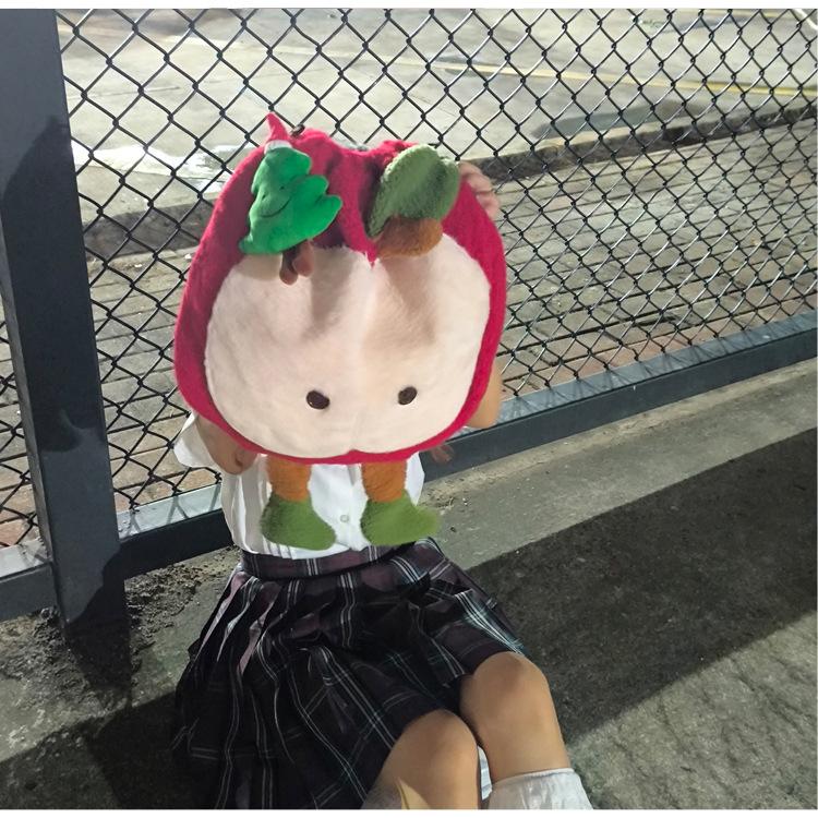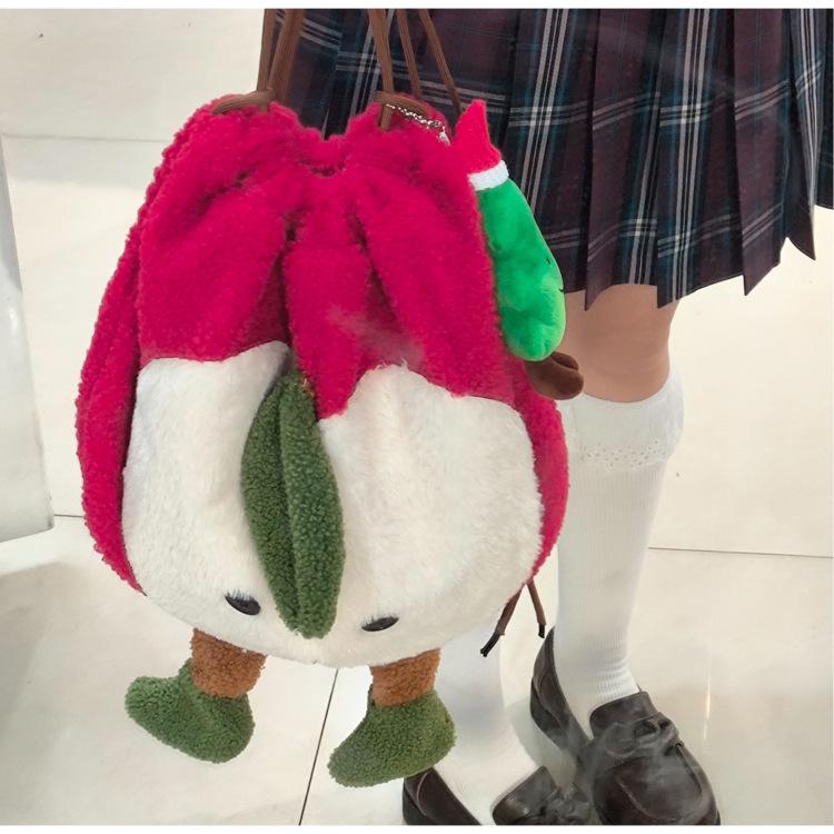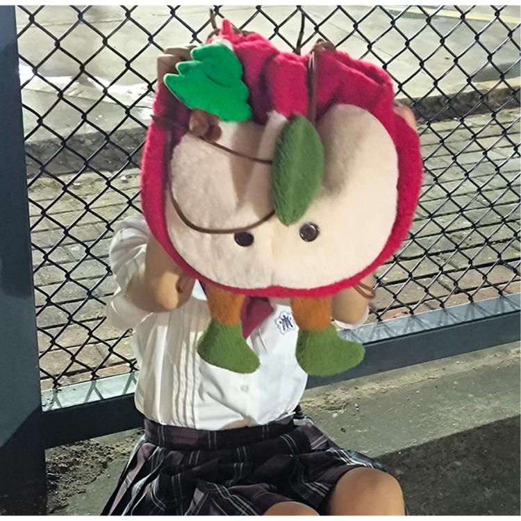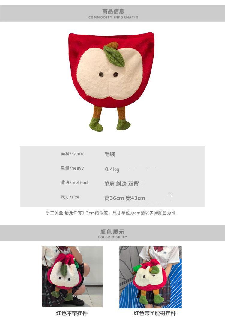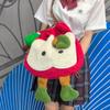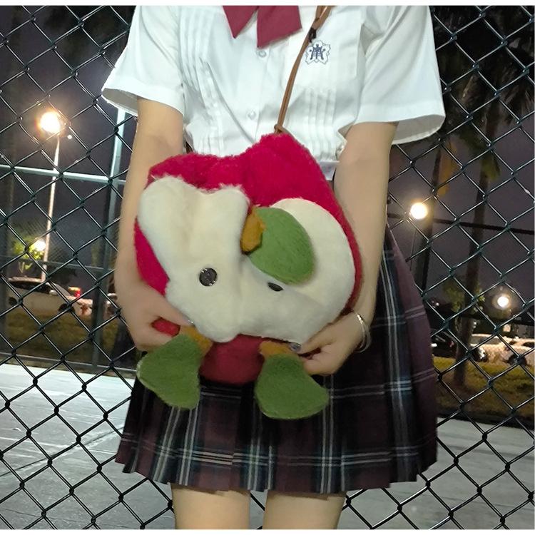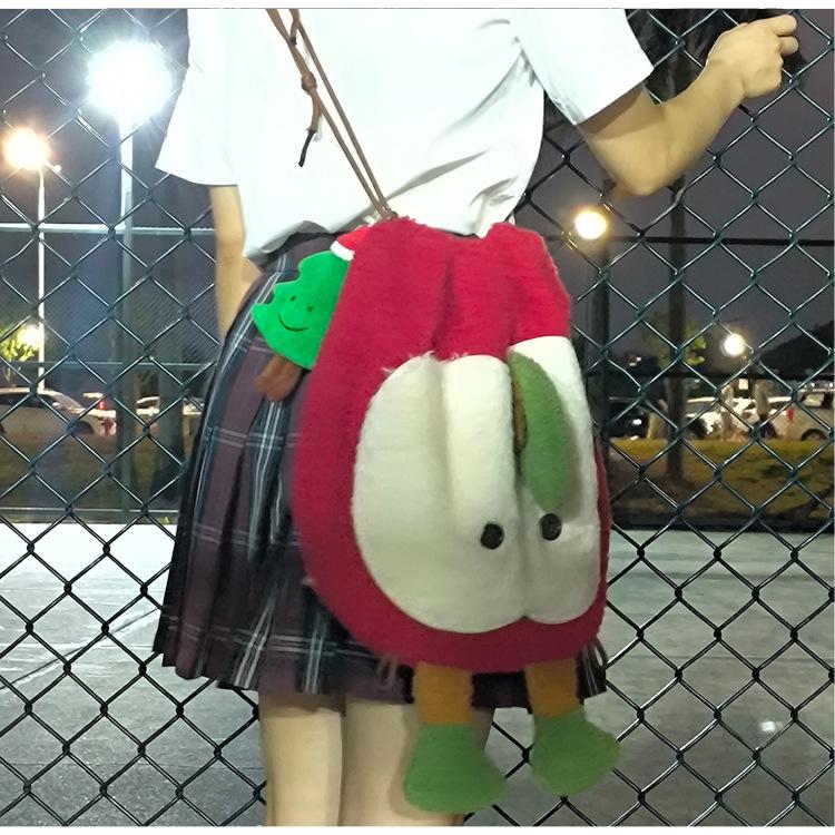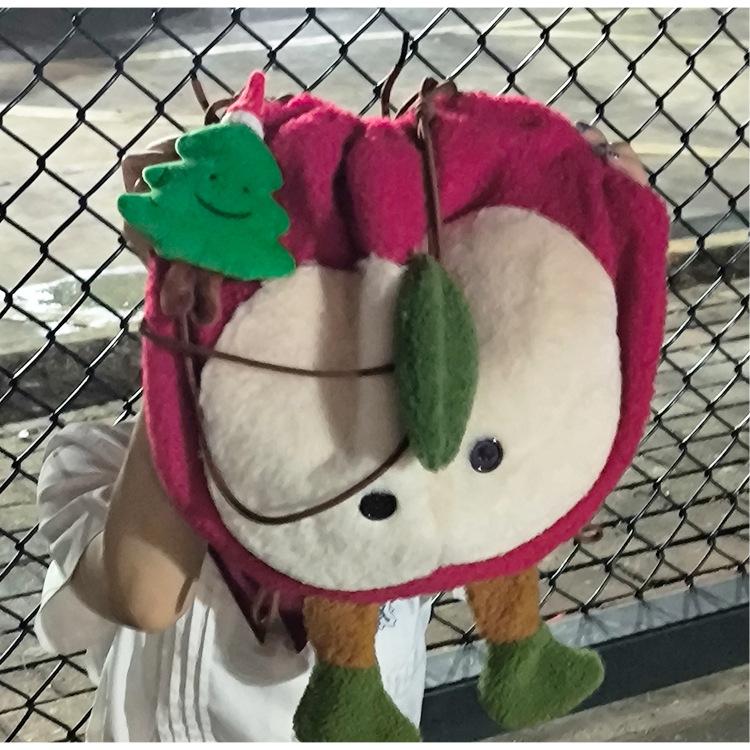 Mochila criativa de desenho animado com cordão de maçã vermelha, bolsa de ombro de pelúcia de grande capacidade, bolsa de ombro de classe de estudante