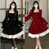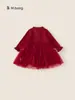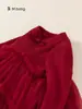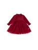 Bong Saia Infantil de Inverno Vermelha Estilo Nacional Selecionada Vestido de Lã com Fivela para Menina Costura Malha Vestido Feminino Po Plus Veludo