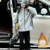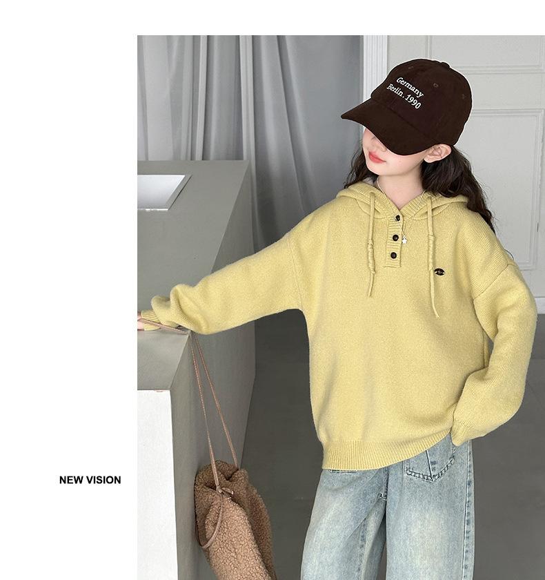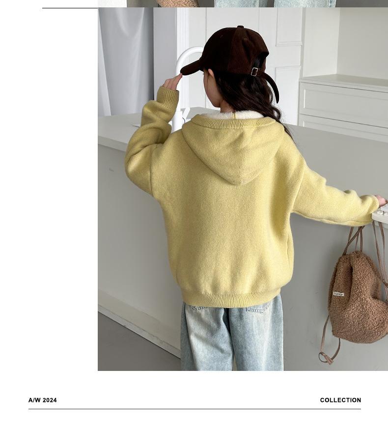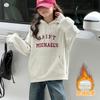 Meninas suéter forrado de lã engrossado outono e inverno uma peça veludo capuz suéter inverno camisa de fundo atacado