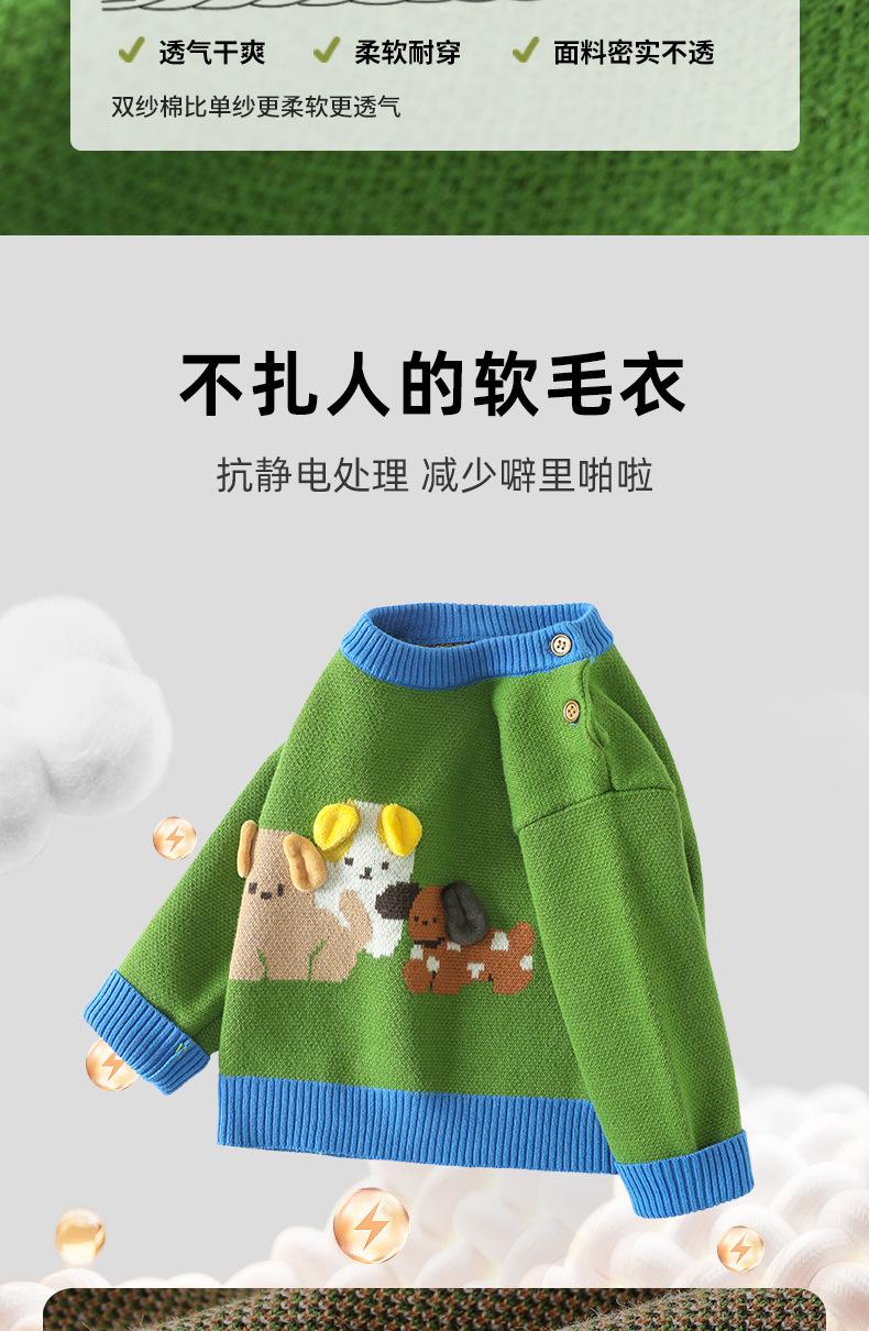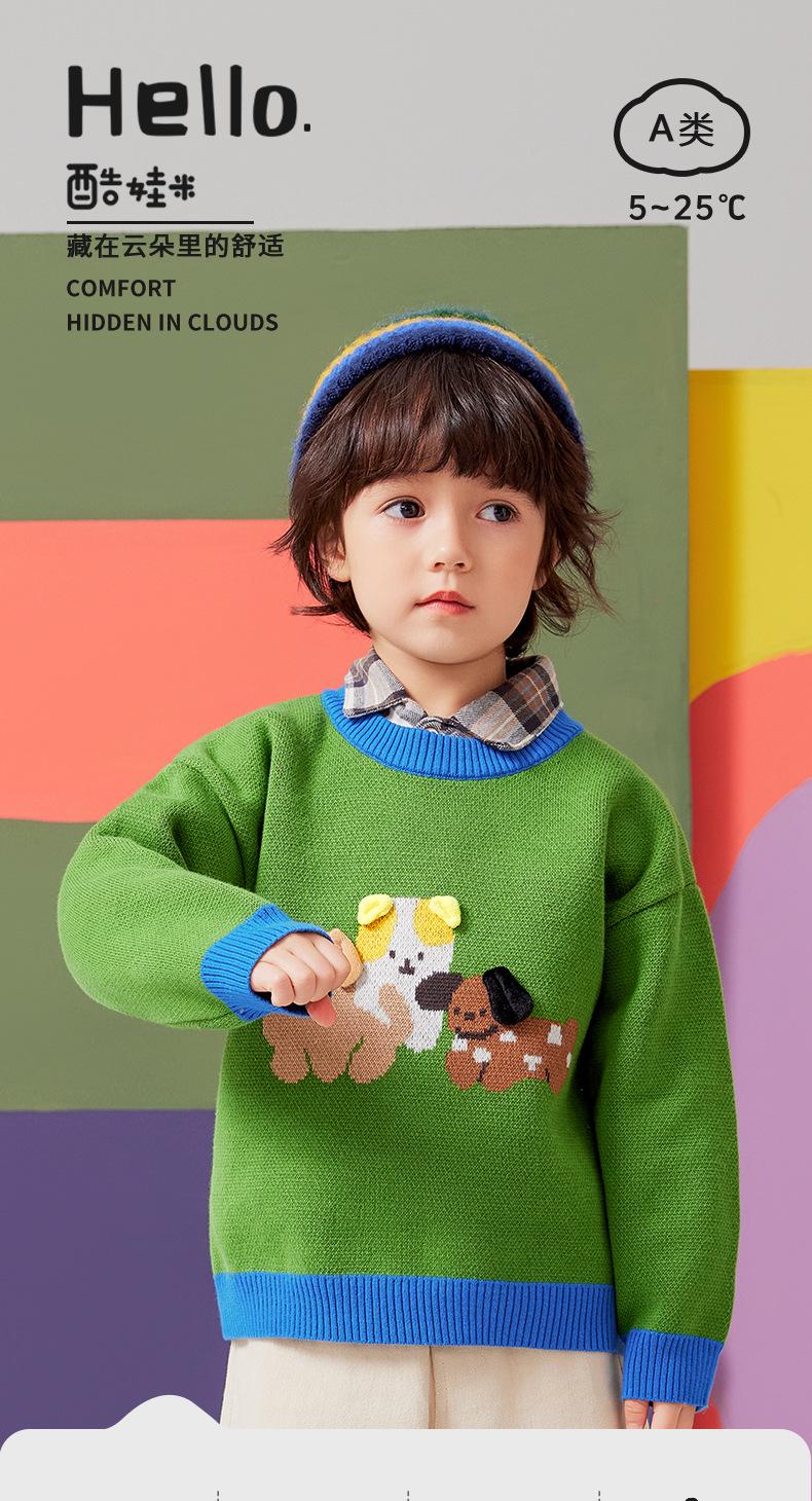 Suéter Pulôver Tricotado Coowa Mi Novo Outono e Inverno Meninos Desenho Coreano Cachorrinho Fofo Festa Menino Cor Contrastante