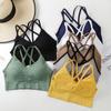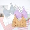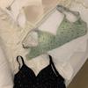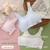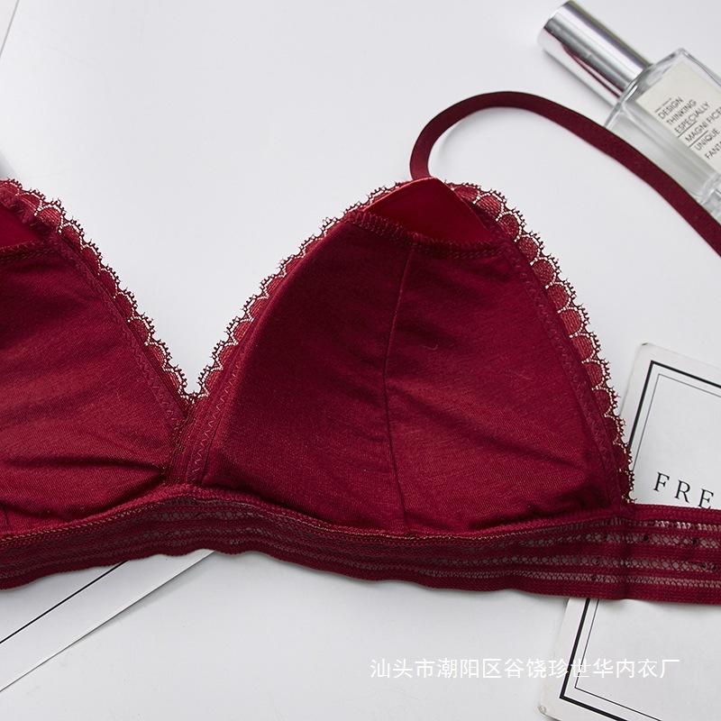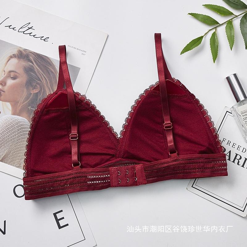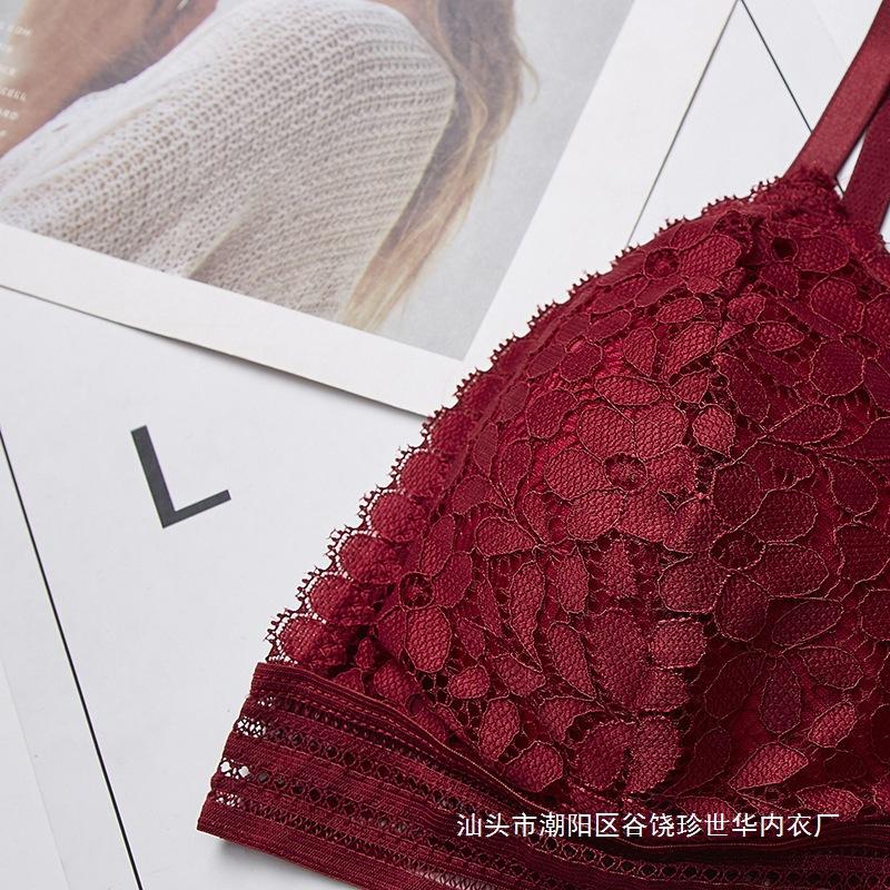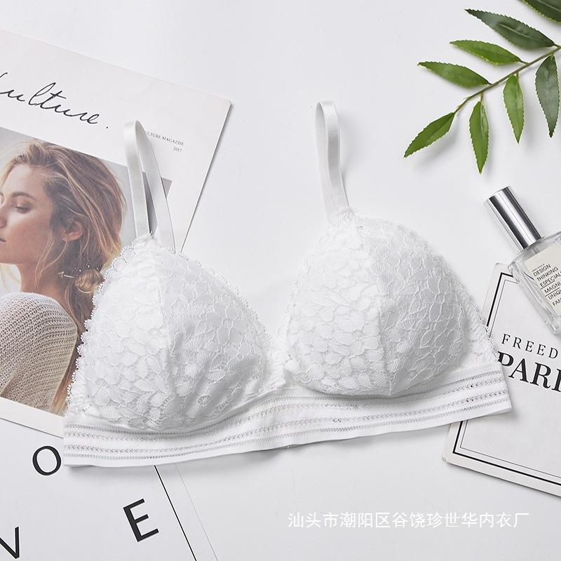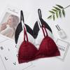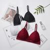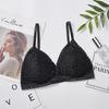 Estilo francês feminino fino triângulo copo estudante menina sem aro tubo topo profundo decote em v renda sexy cinto peito almofada sutiã roupa interior