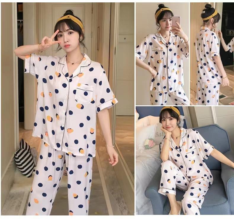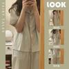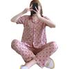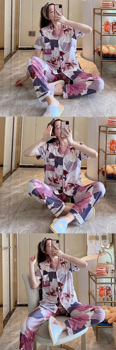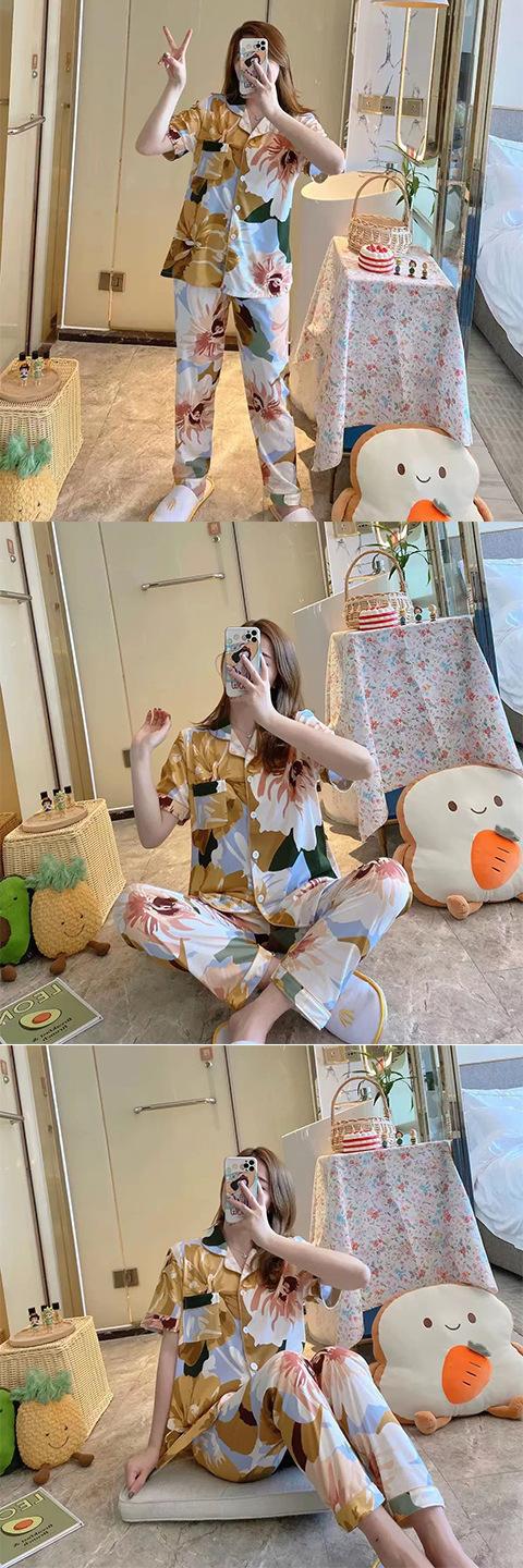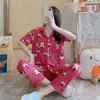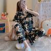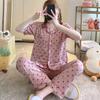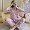Pijamas Femininos de Primavera e Verão 2025 Manga Curta Calça Comprida Ins Novo Cardigan Casual Solto Pode Ser Usado Fora Conjunto de Roupa de Descanso