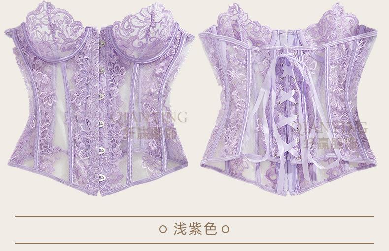 Lingerie Sexy Bordada em Renda Transfronteiriça Vazada Transparente Corset com Barbatanas Modelador de Cintura Modelador de Corpo para Mulheres