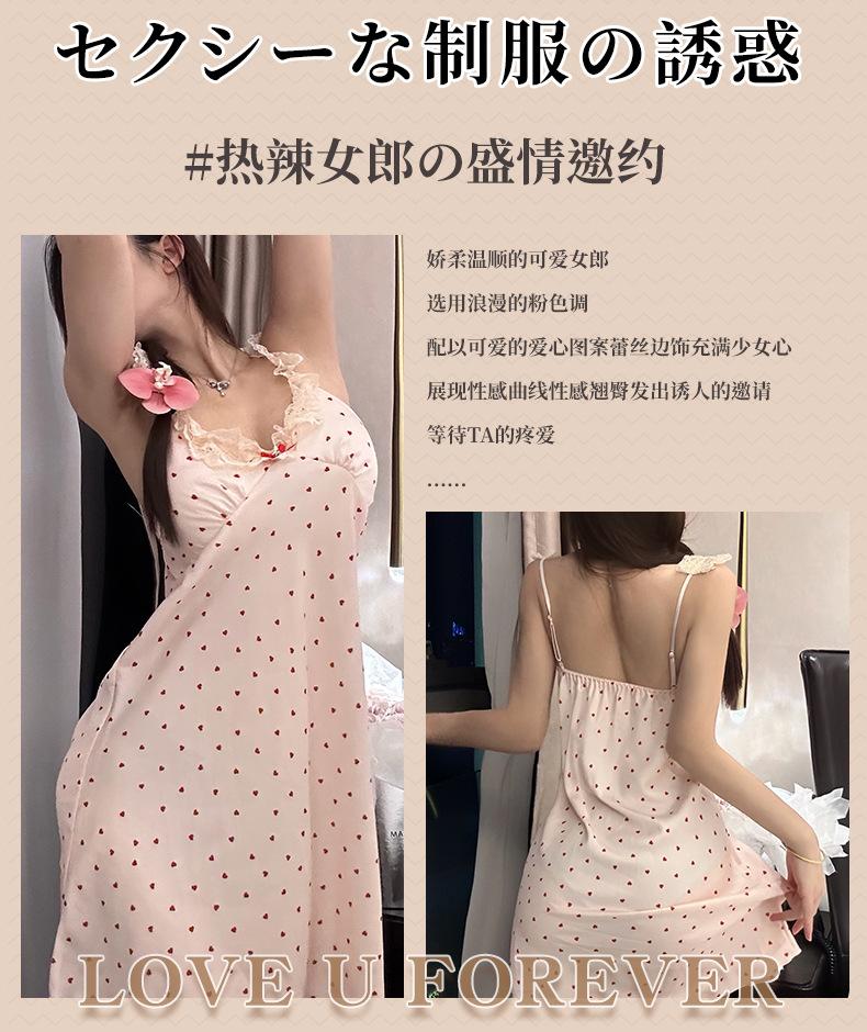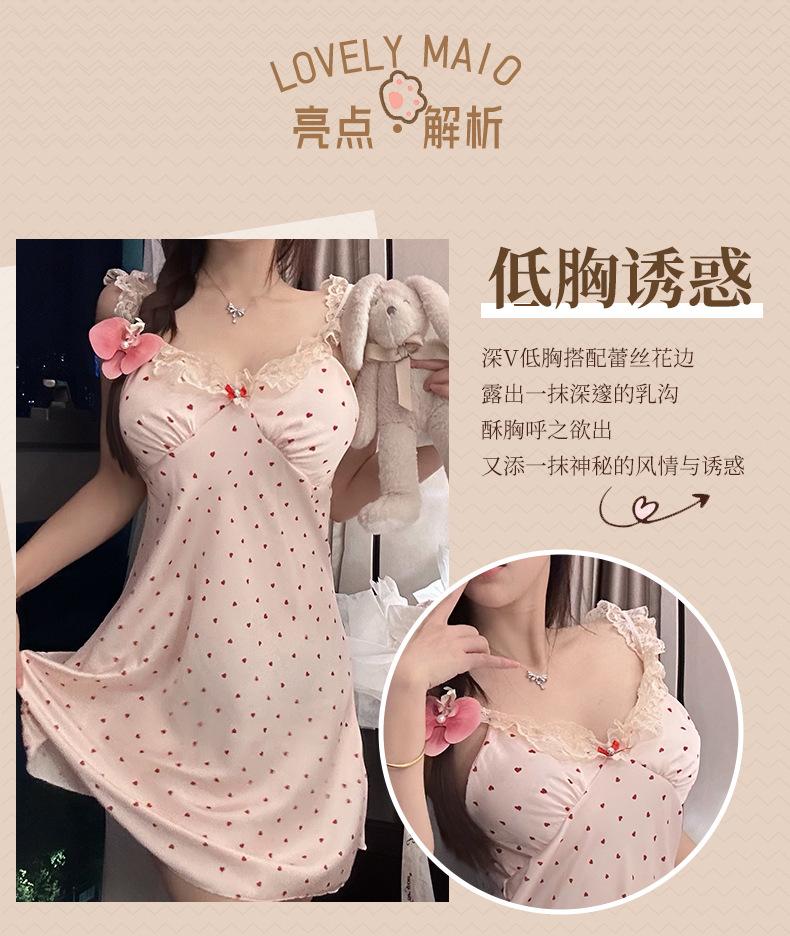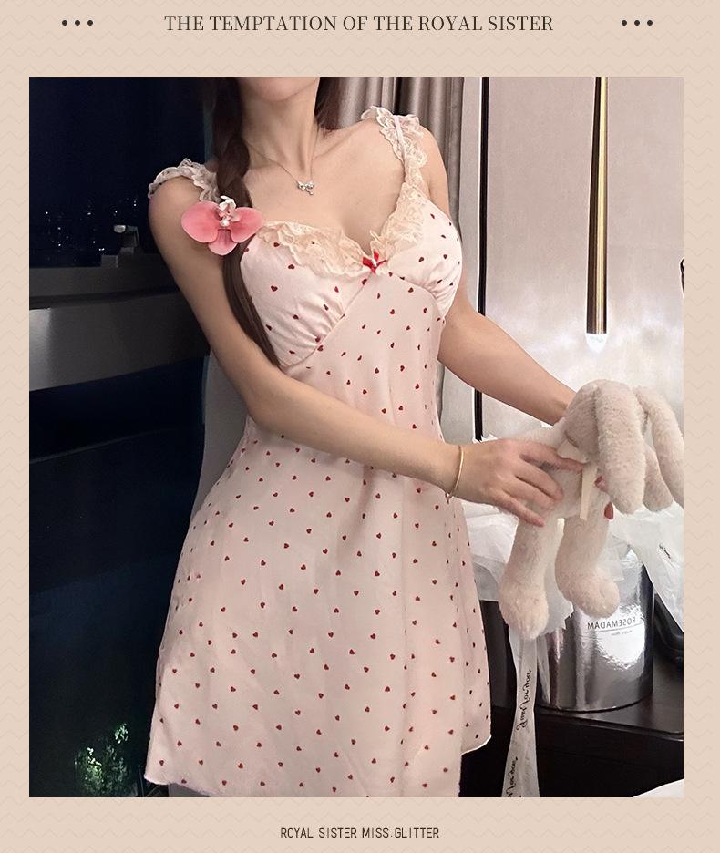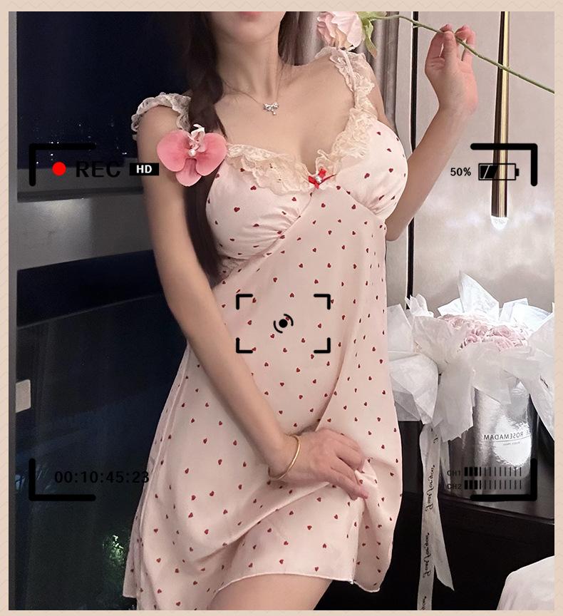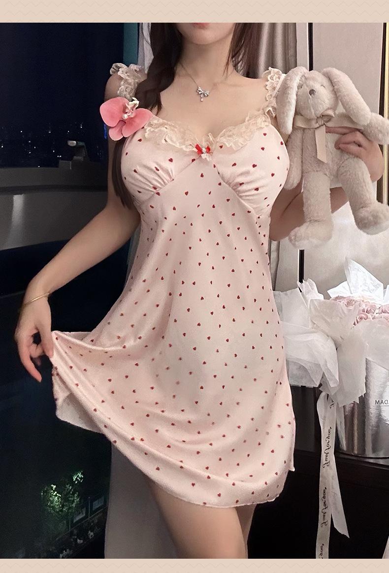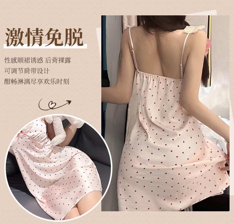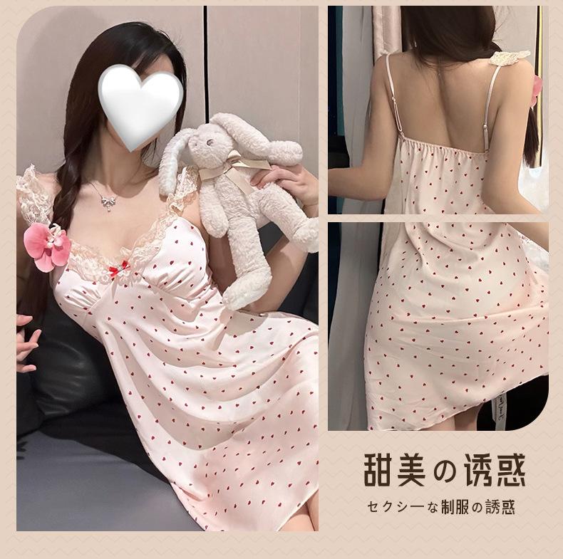 Gui Yun [Love Bubble] Vestido francês tipo estilingue Camisola de seda gelada Sexy Rosa Puro Love Girl