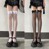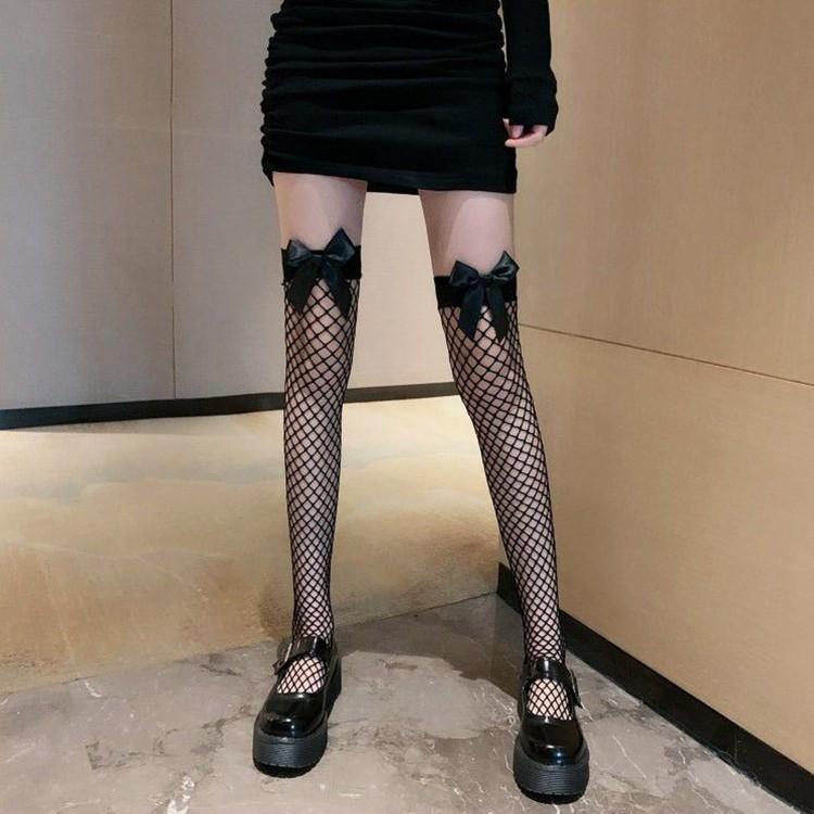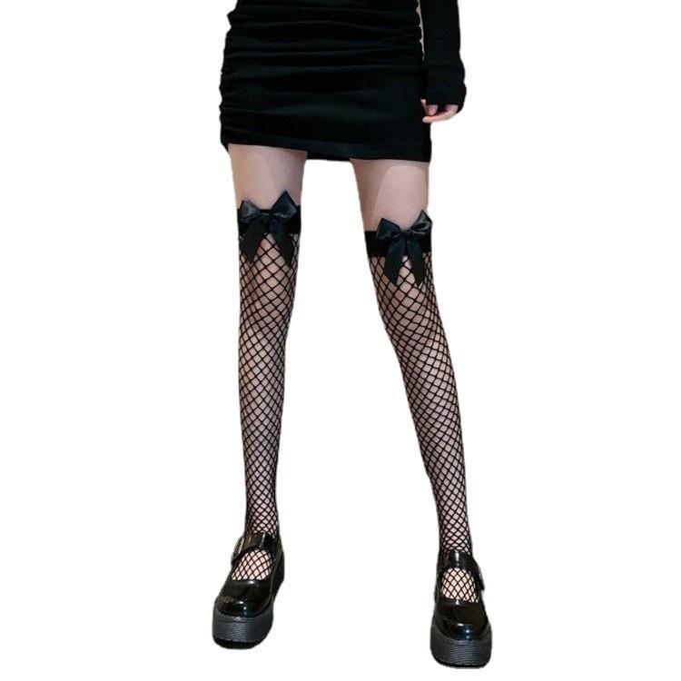 Meias Acima do Joelho com Laço, Meias de Rede, Meias Lolita, Meias Jk de Meia Panturrilha, Sexy Renda Acima do Joelho Curto Malha Estilo Fino