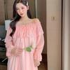 Camisola francesa doce de manga curta, pijama de comprimento médio, roupa externa para meninas, estilo novo, estilo retrô, fofo, roupas de verão para casa