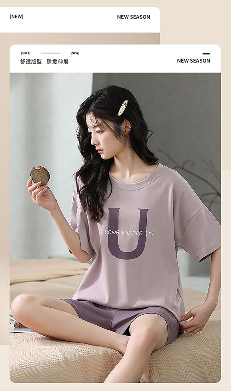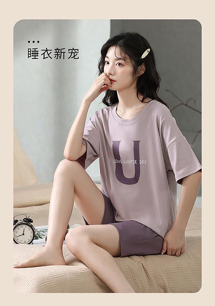 Pijamas Feminino Verão Puro Algodão Shorts de manga curta Verão Simples Plus Size Esportes Casual Outwear Home Roupas terno