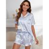 Novo Transfronteiriço Comércio Exterior Verão Feminino Pijama de Cetim Conjunto de Três Peças Renda Alça Espaguete Shorts Terno de Manga Comprida Roupa de Casa