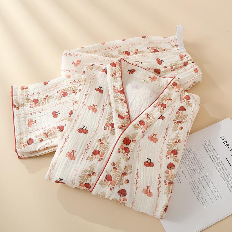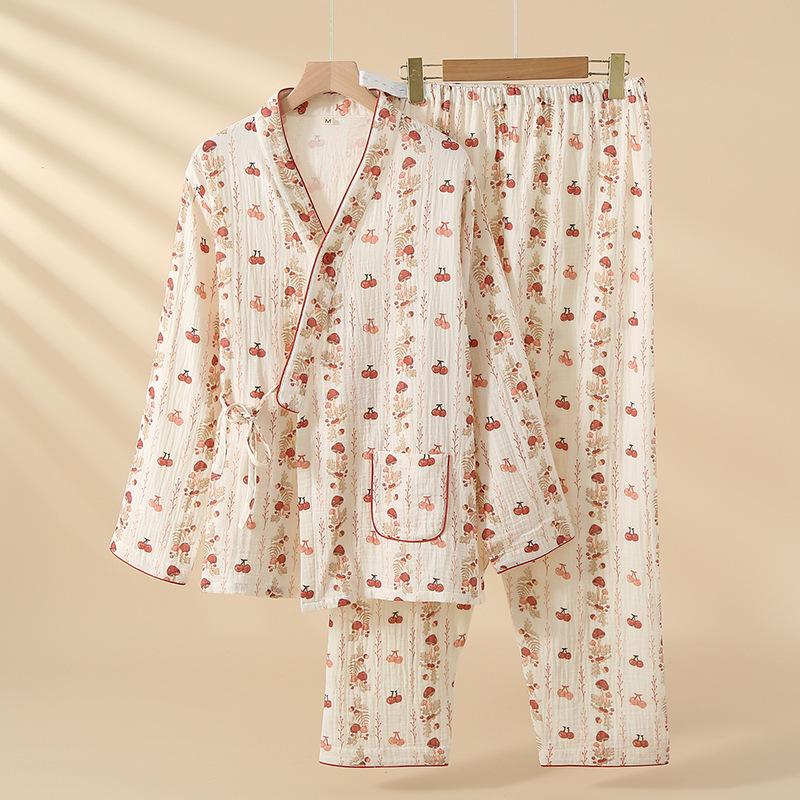 Roupa de Maternidade de Gaze de Algodão Puro para Primavera e Outono, Nova Gaze de Camada Dupla, Ajustável durante a Gravidez, Conjunto de Pijama para Amamentação Pós-Parto