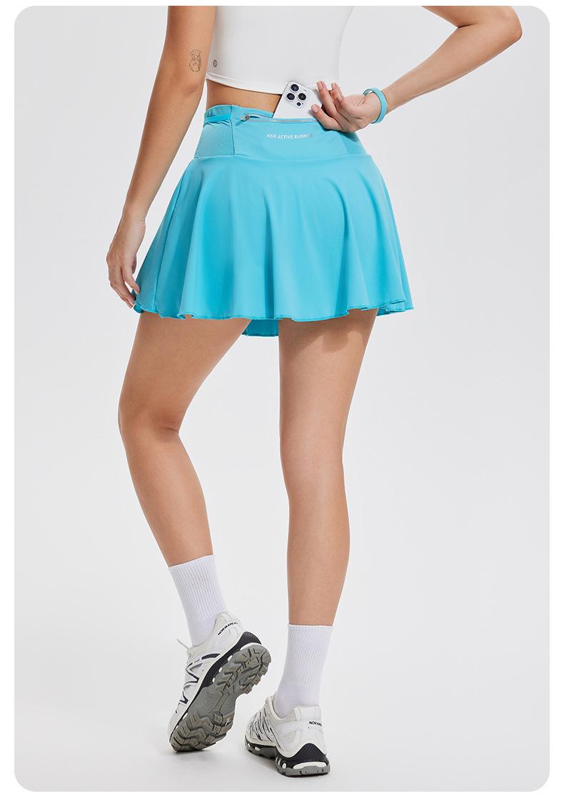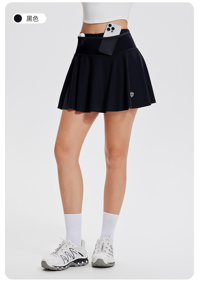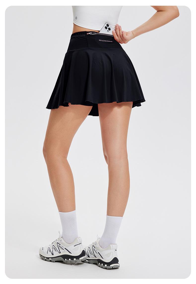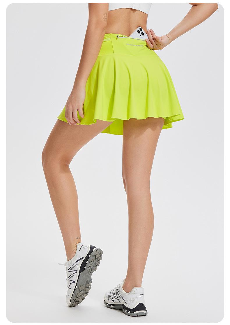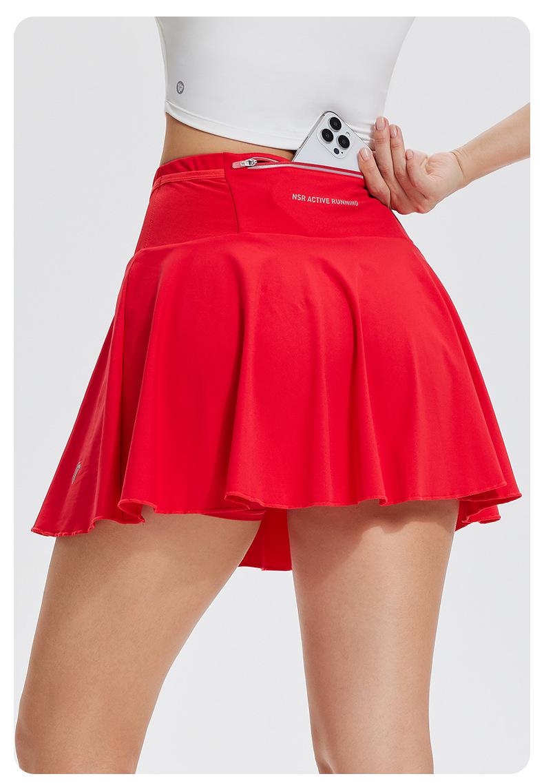 Saia esportiva com bolso de cintura cheia, saia fina de cintura alta anti-luz para mulheres, saia plissada para corrida, ioga, tênis para o verão