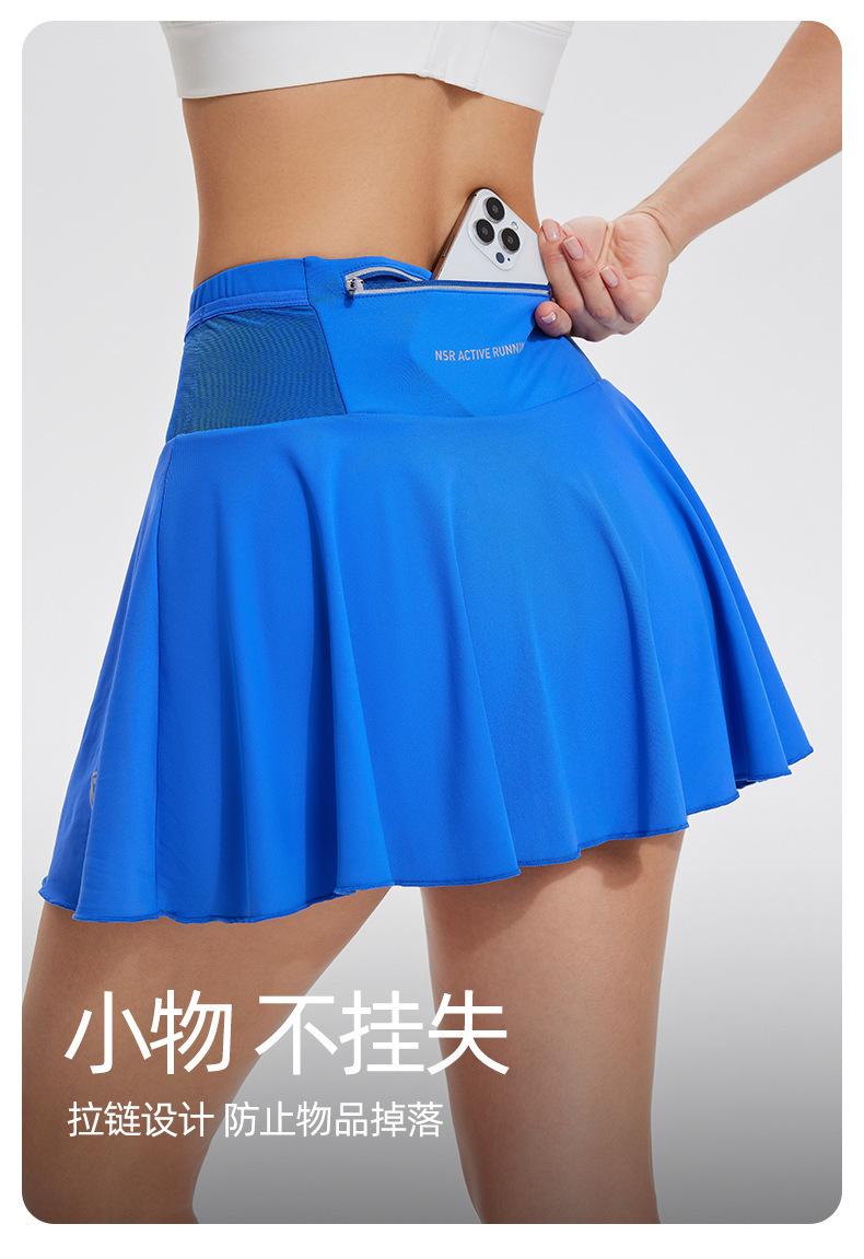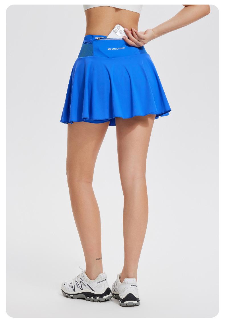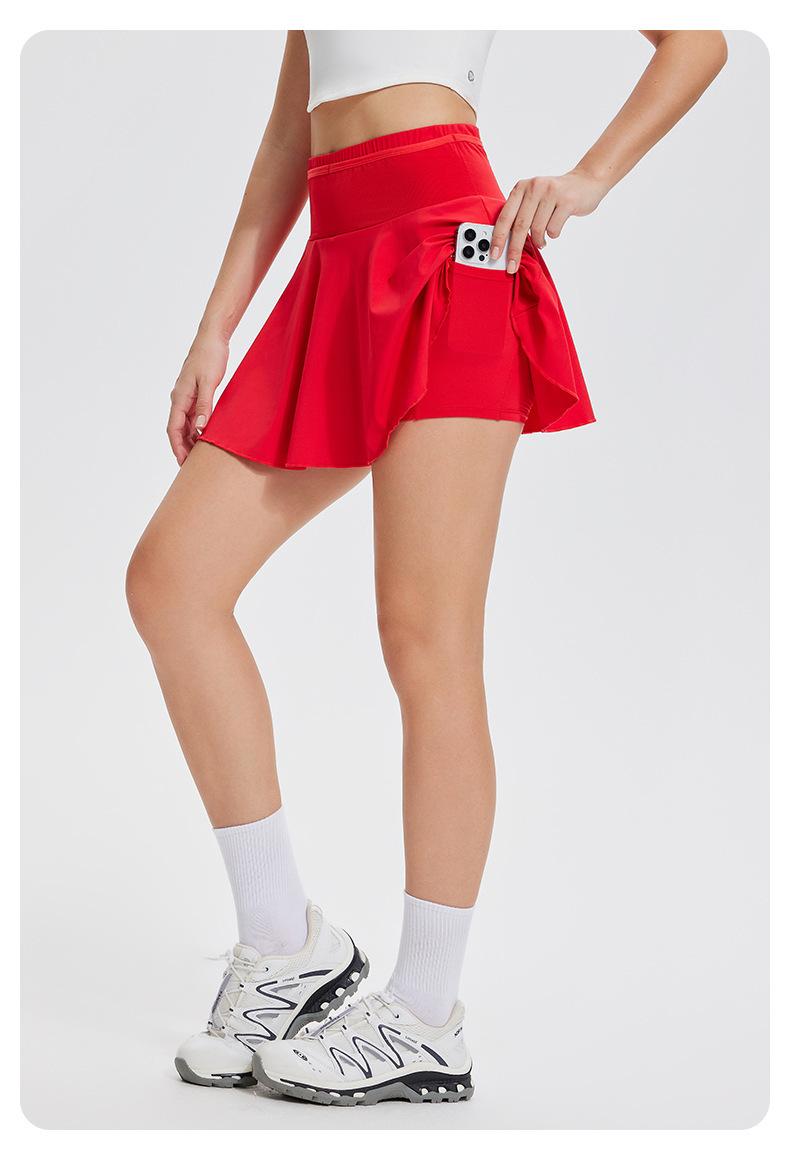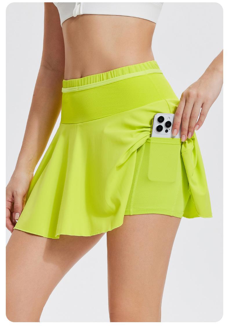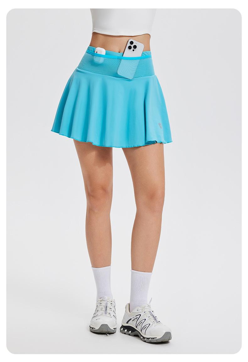 Saia esportiva com bolso de cintura cheia, saia fina de cintura alta anti-luz para mulheres, saia plissada para corrida, ioga, tênis para o verão