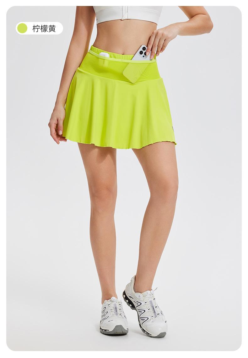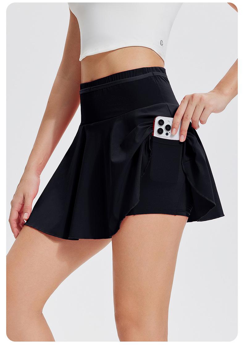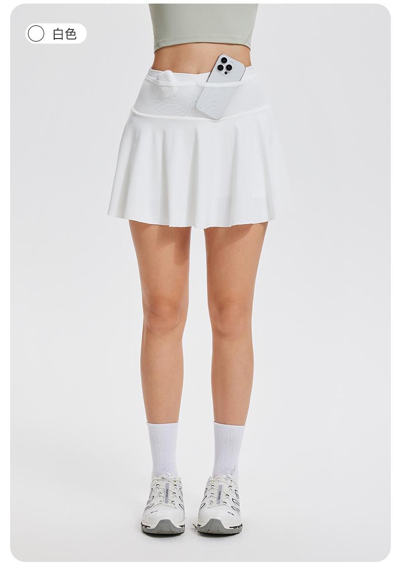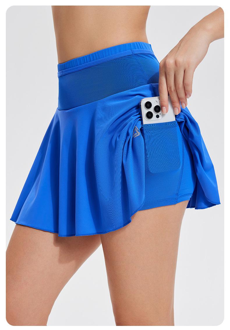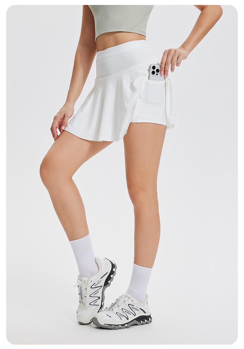 Saia esportiva com bolso de cintura cheia, saia fina de cintura alta anti-luz para mulheres, saia plissada para corrida, ioga, tênis para o verão