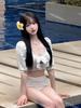 2025 Novo Estilo Coreano Pure Desire Peito Pequeno Meia Manga Puff Manga Esportes Cintura Alta Maiô Slimming Split Maiô Feminino