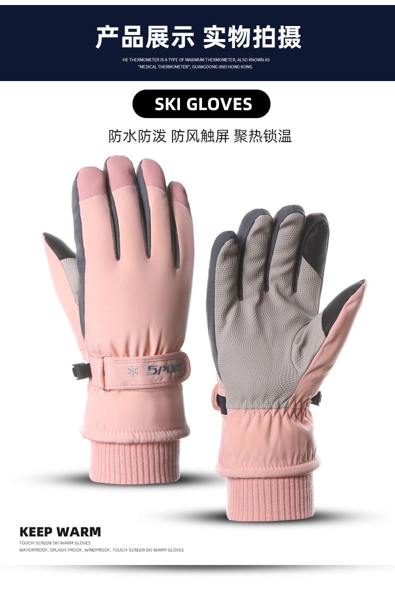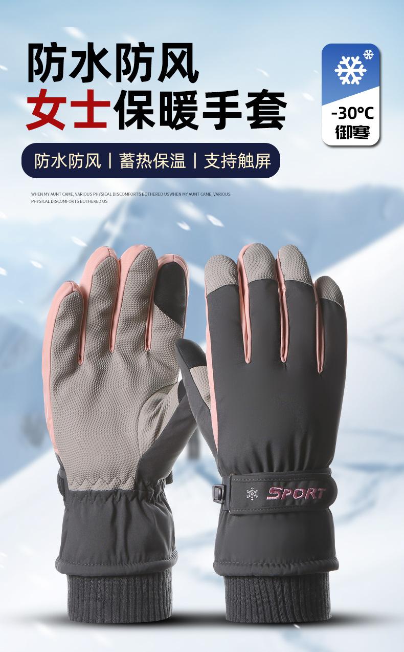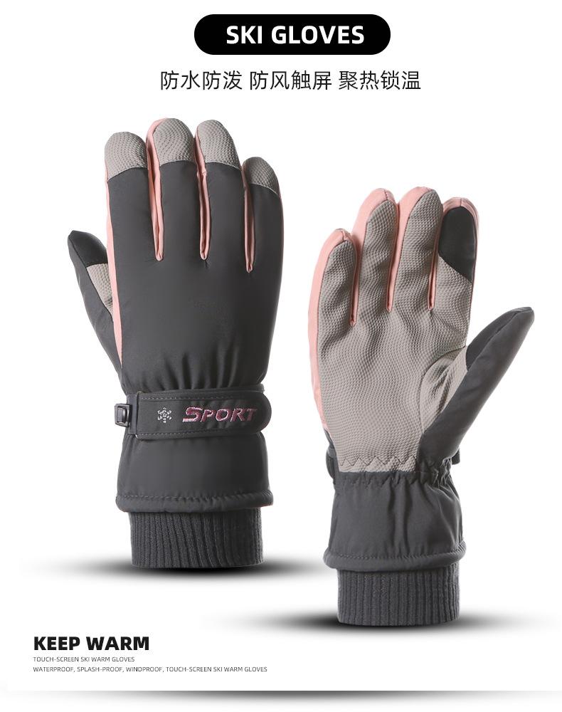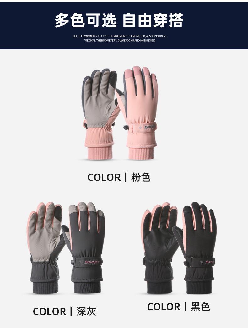 Luvas de esqui femininas de inverno com forro de lã, espessadas, à prova de frio, à prova de vento, luvas de ciclismo, montanhismo, luvas quentes com tela sensível ao toque
