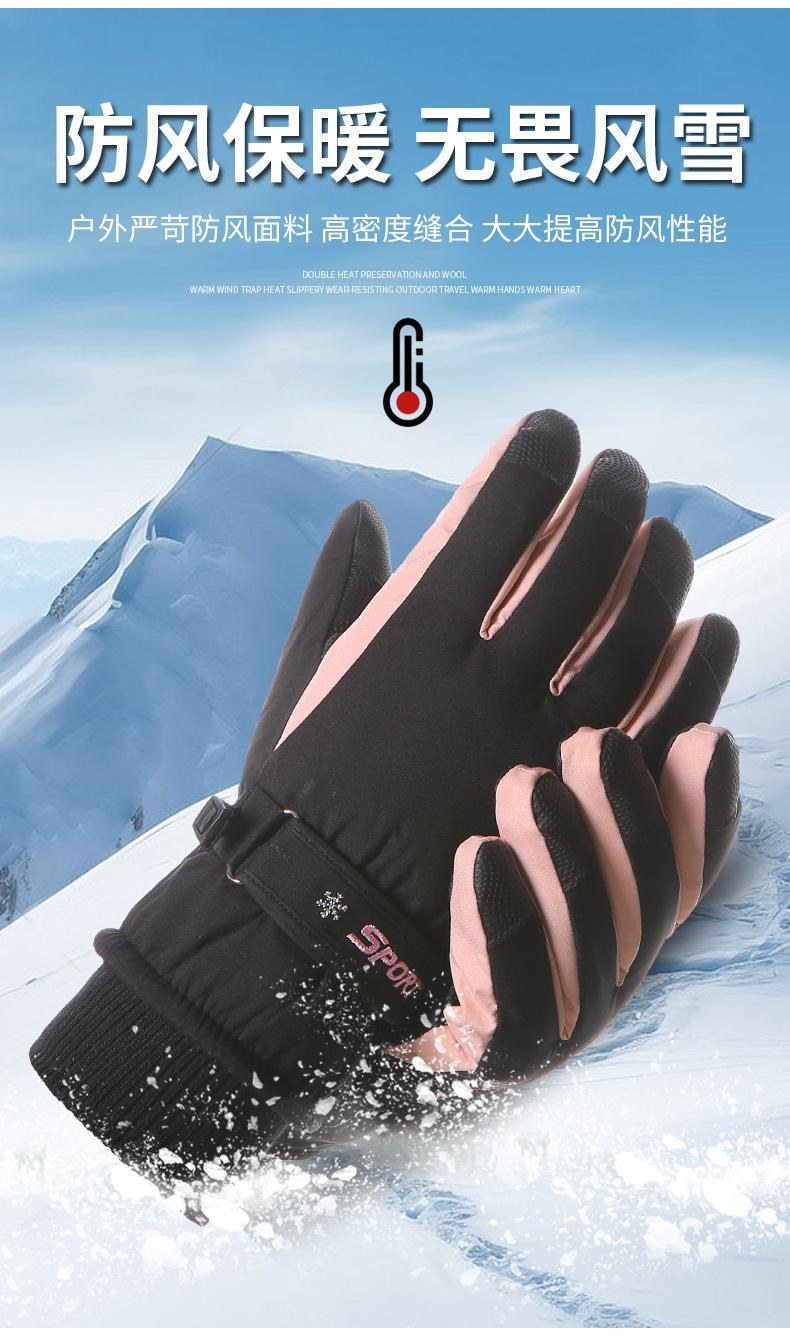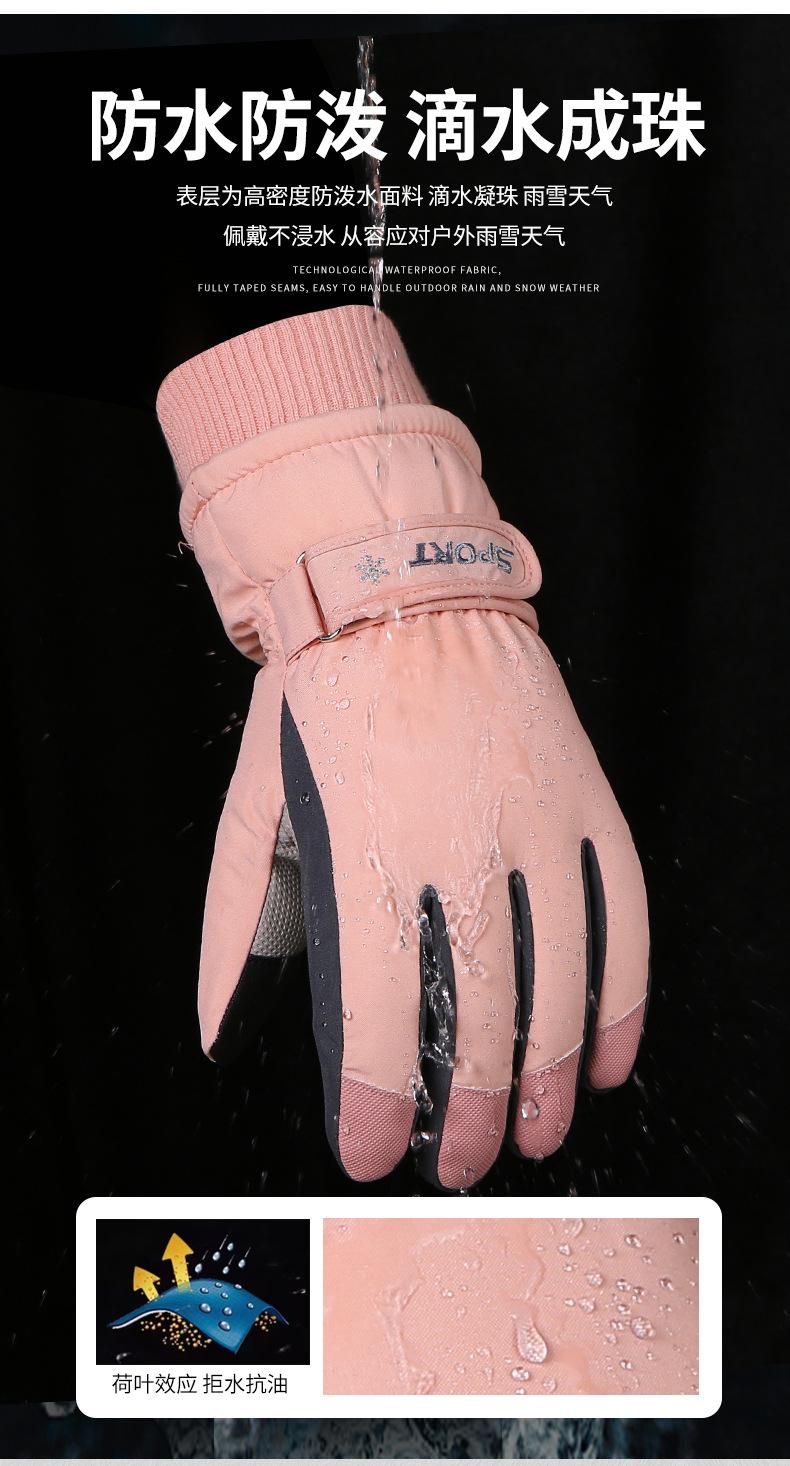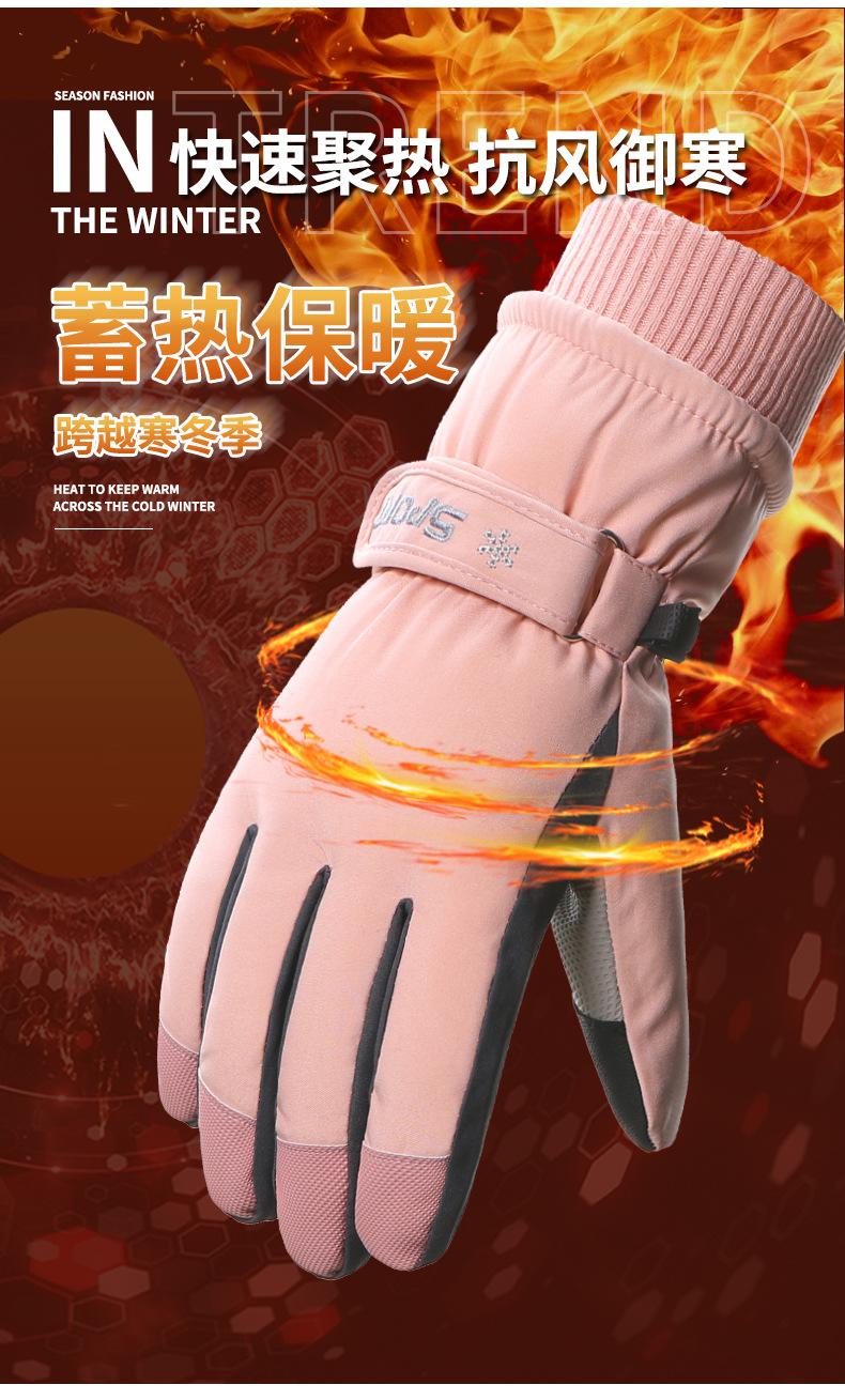 Luvas de esqui femininas de inverno com forro de lã, espessadas, à prova de frio, à prova de vento, luvas de ciclismo, montanhismo, luvas quentes com tela sensível ao toque