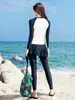 Maiô Split Feminino 2025 Novo Conjunto de Três Peças Protetor Solar para Natação Calças Conservadoras de Mangas Compridas Surf Snorkeling Terno de Água-viva