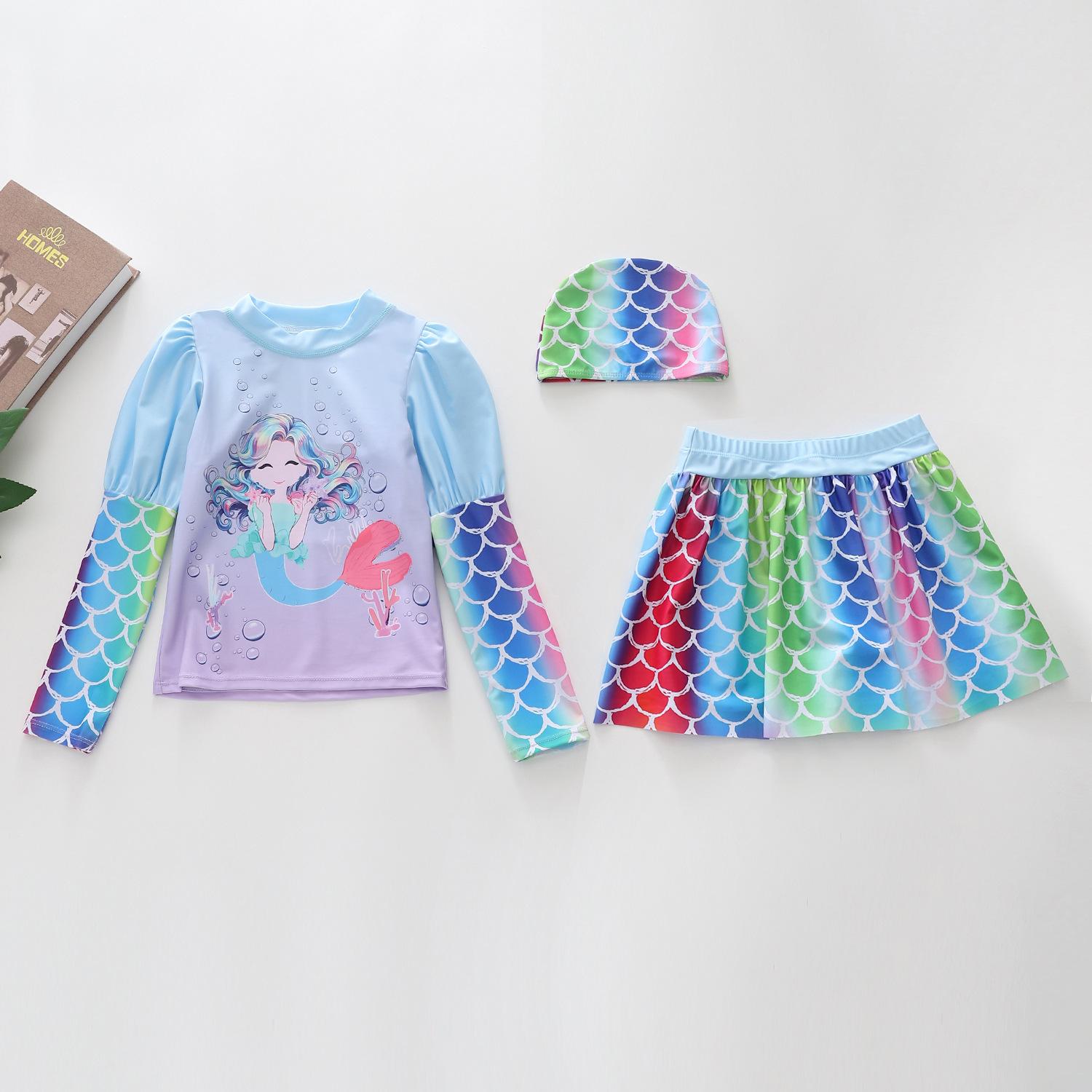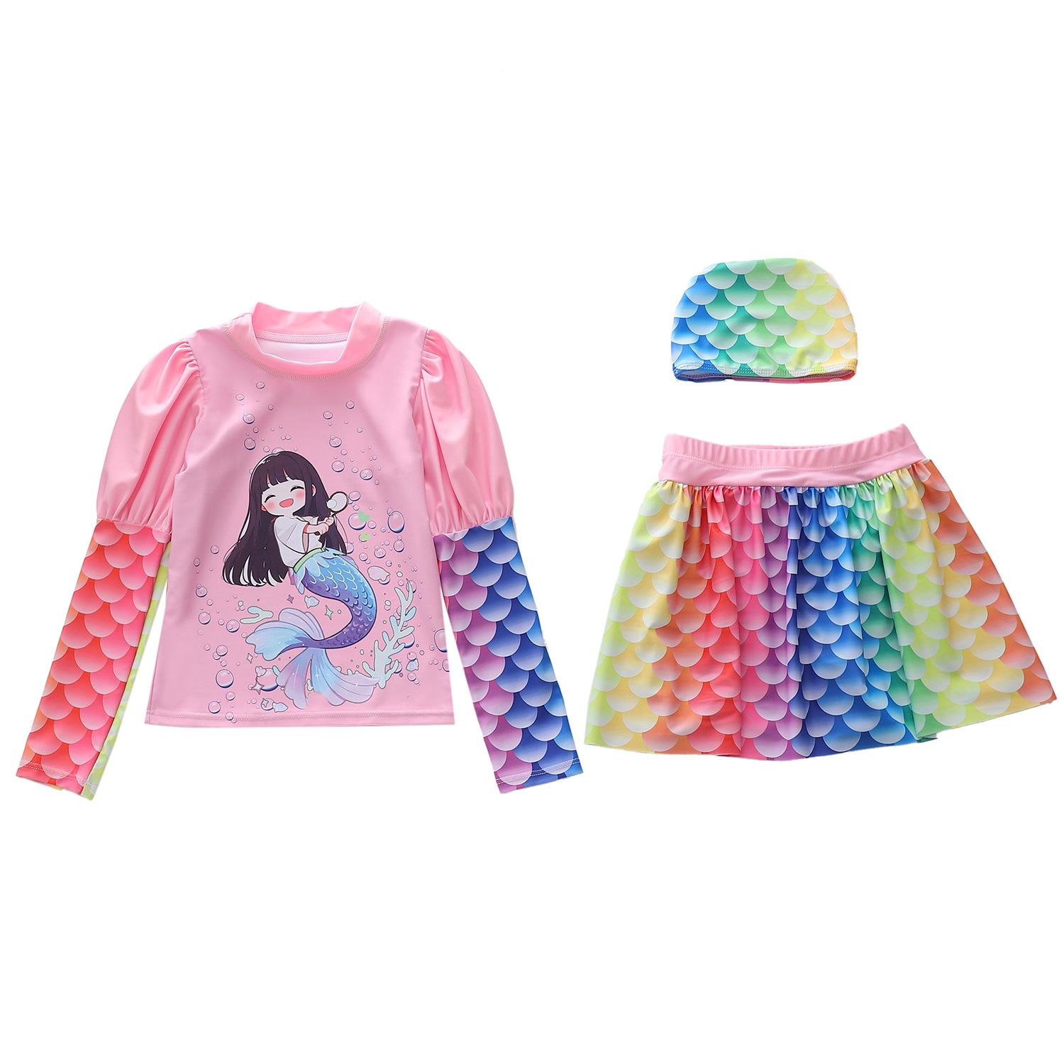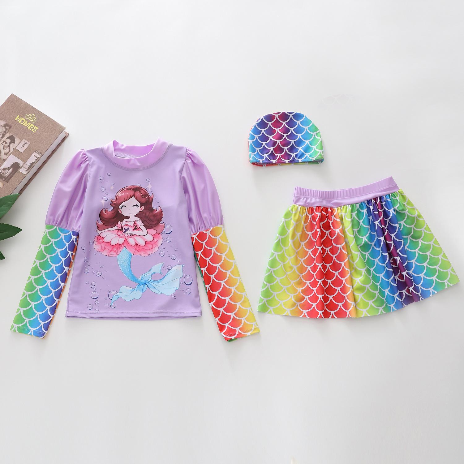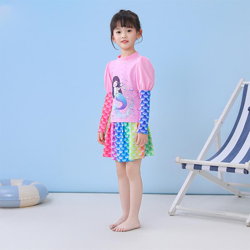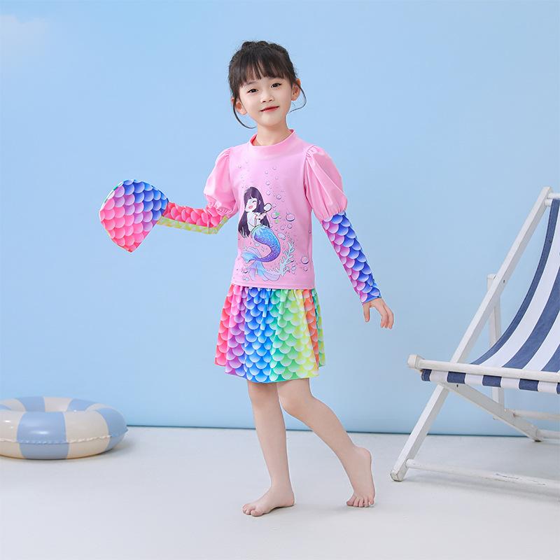 2024 Novos trajes de banho infantis para meninas Trajes de banho sereia Menina Bebê Manga comprida Pequeno Médio e Grande Maiô infantil dividido