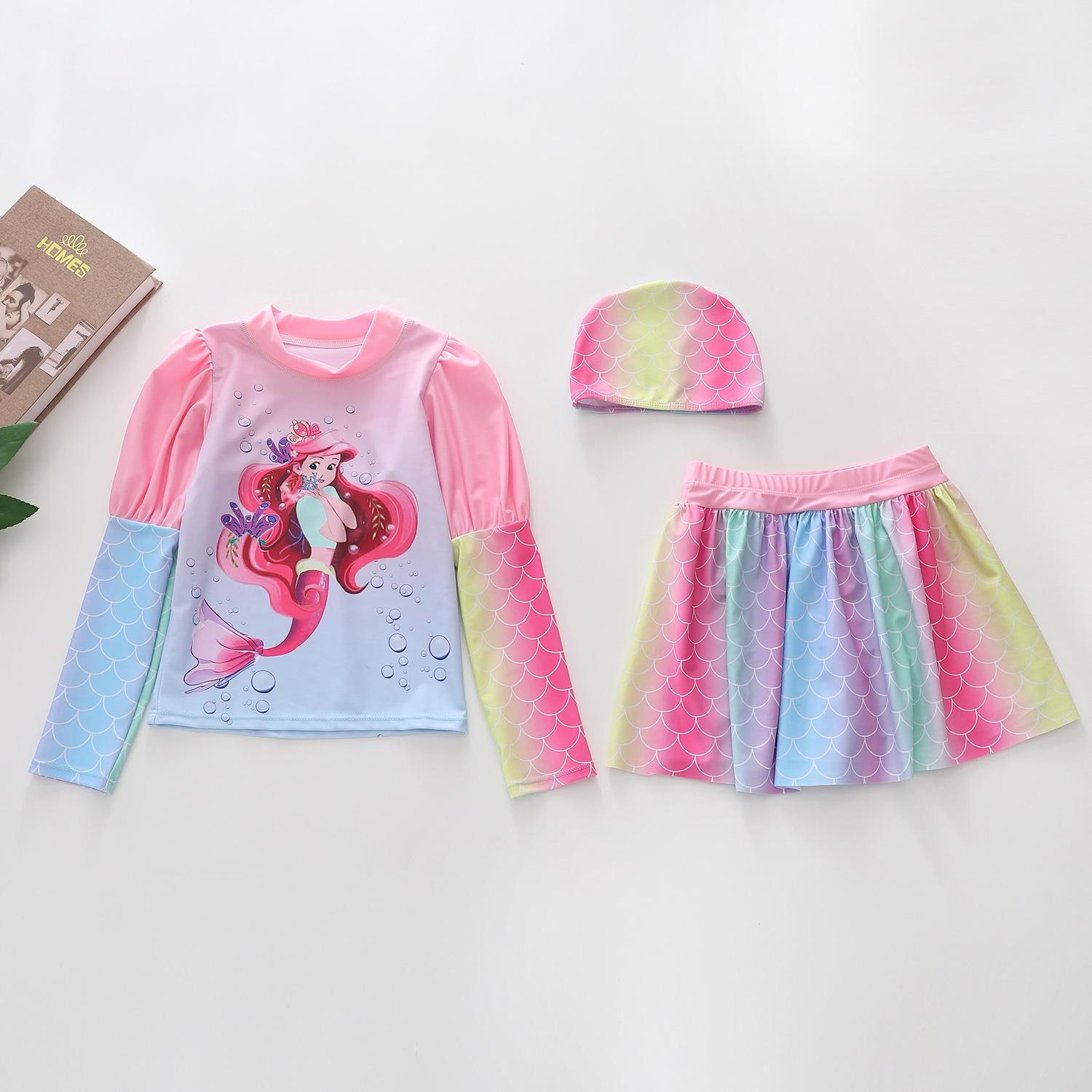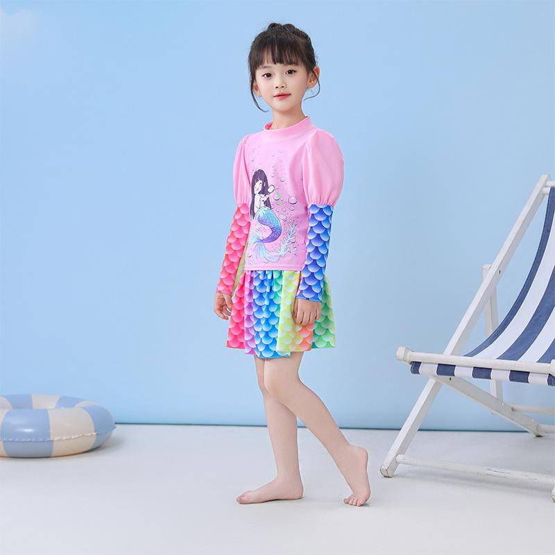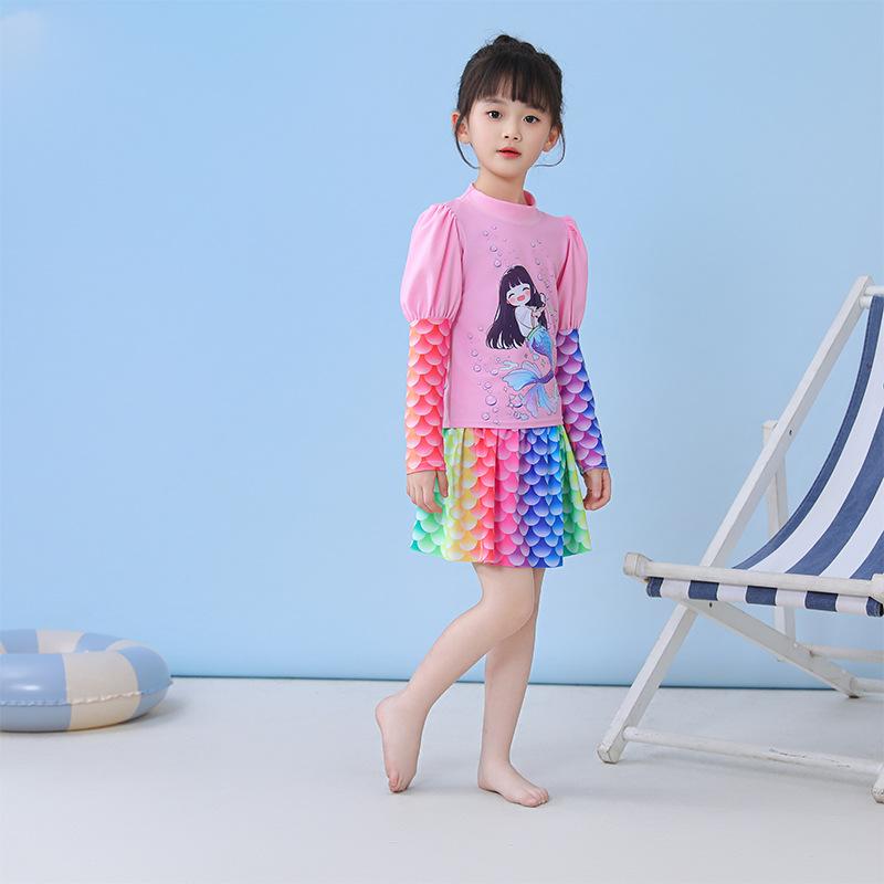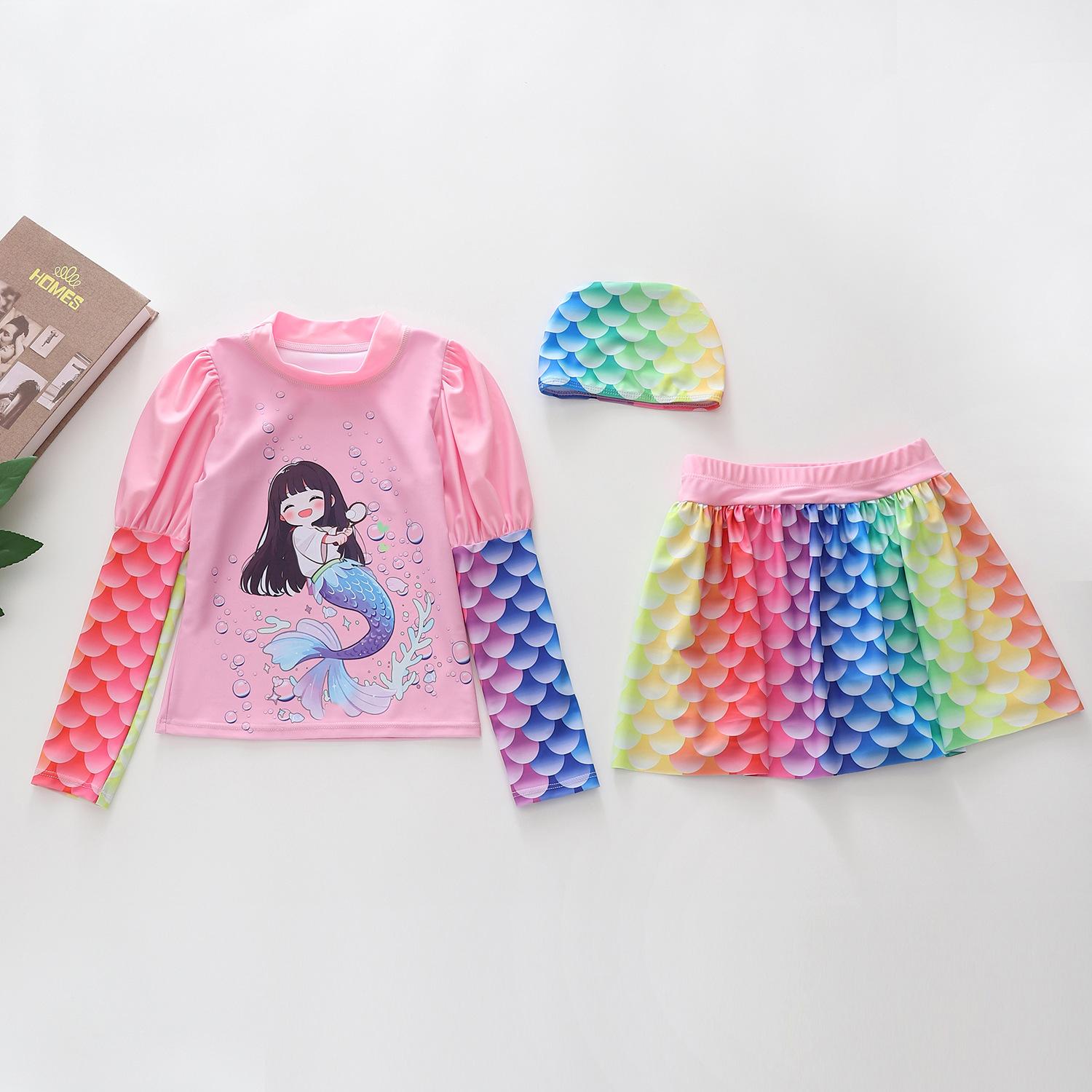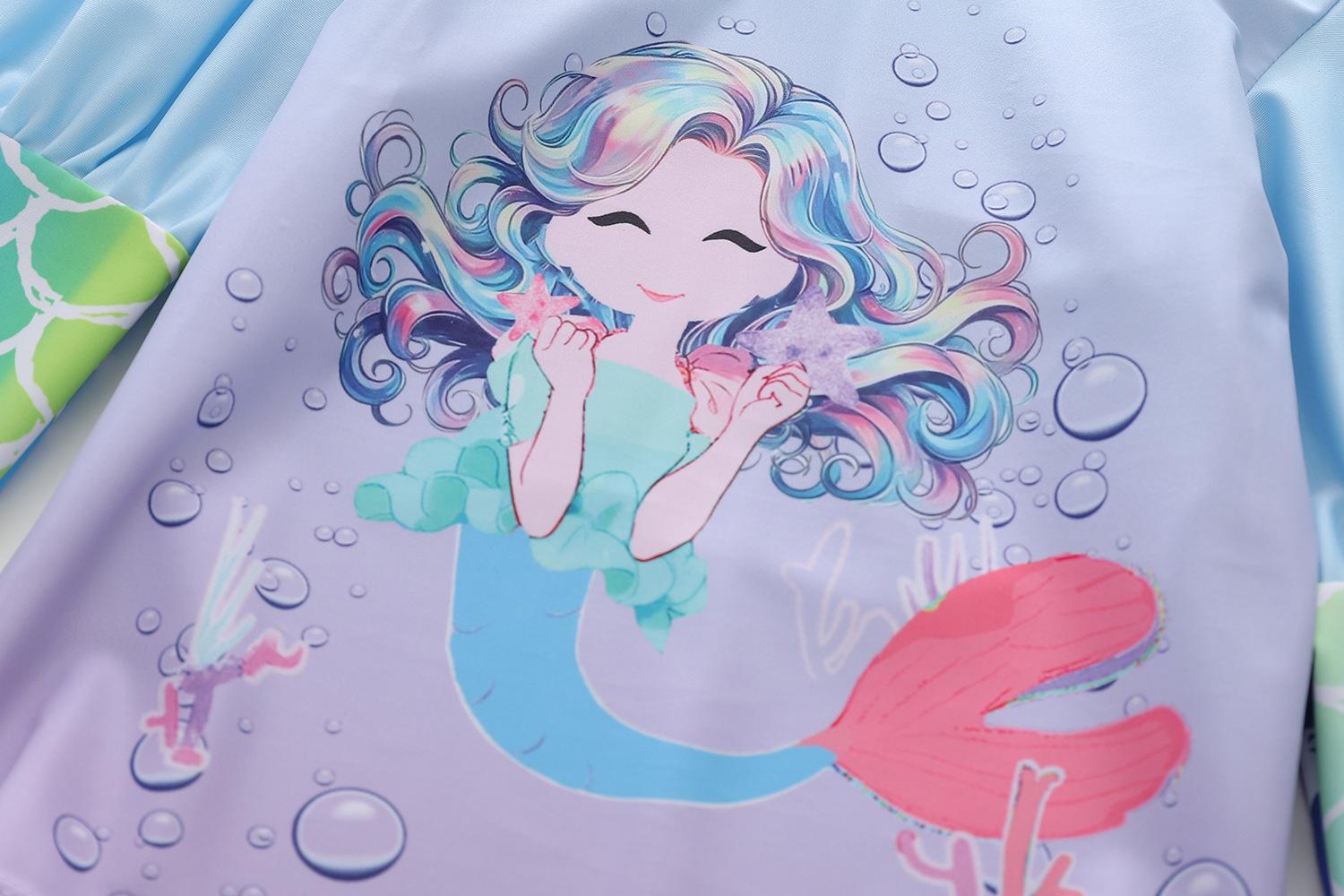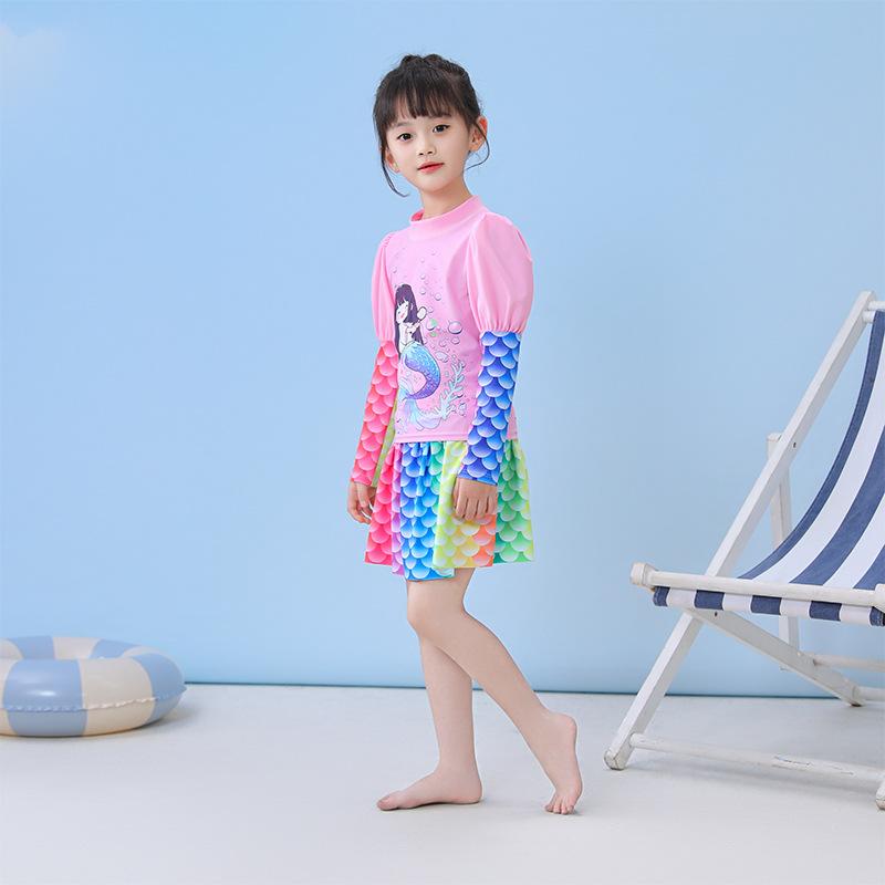 2024 Novos trajes de banho infantis para meninas Trajes de banho sereia Menina Bebê Manga comprida Pequeno Médio e Grande Maiô infantil dividido