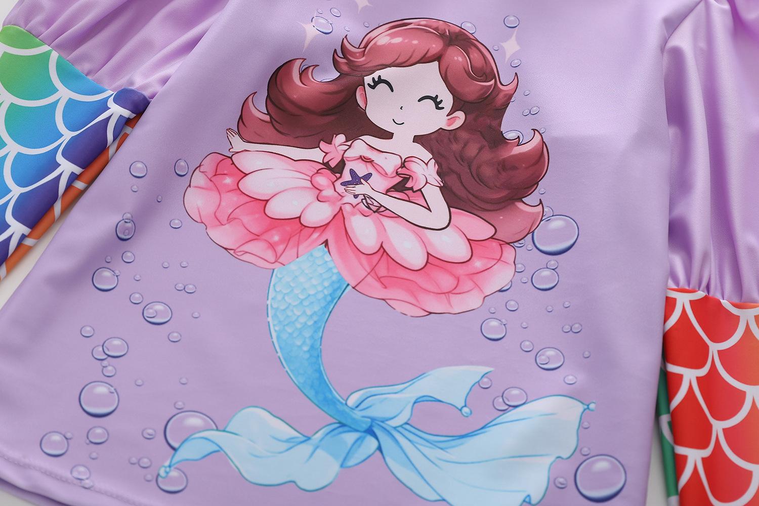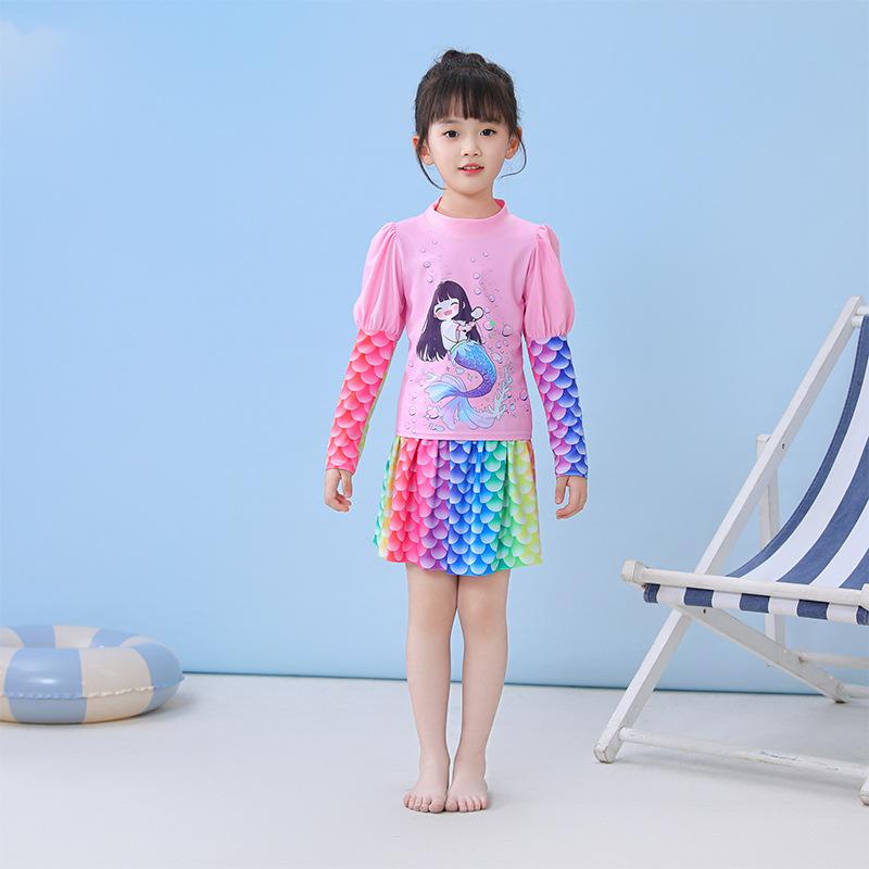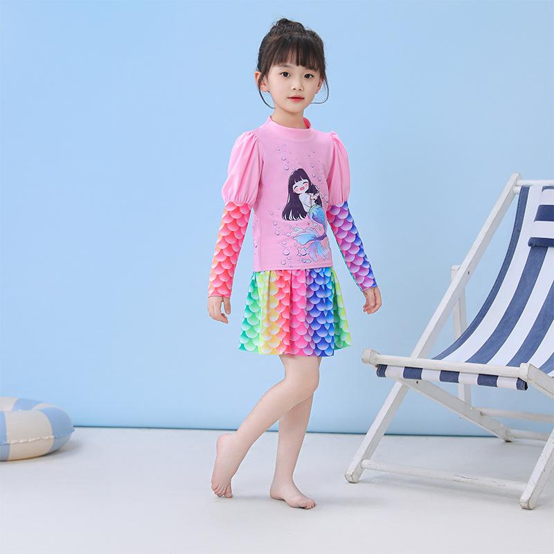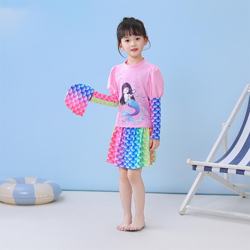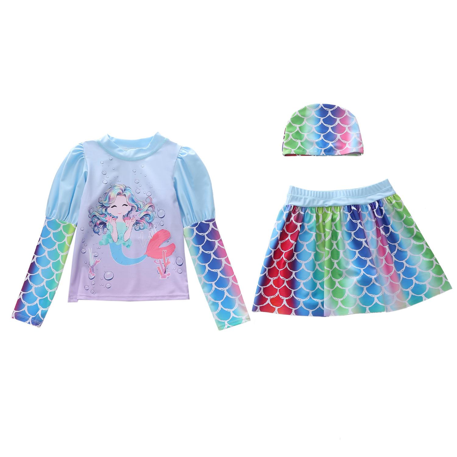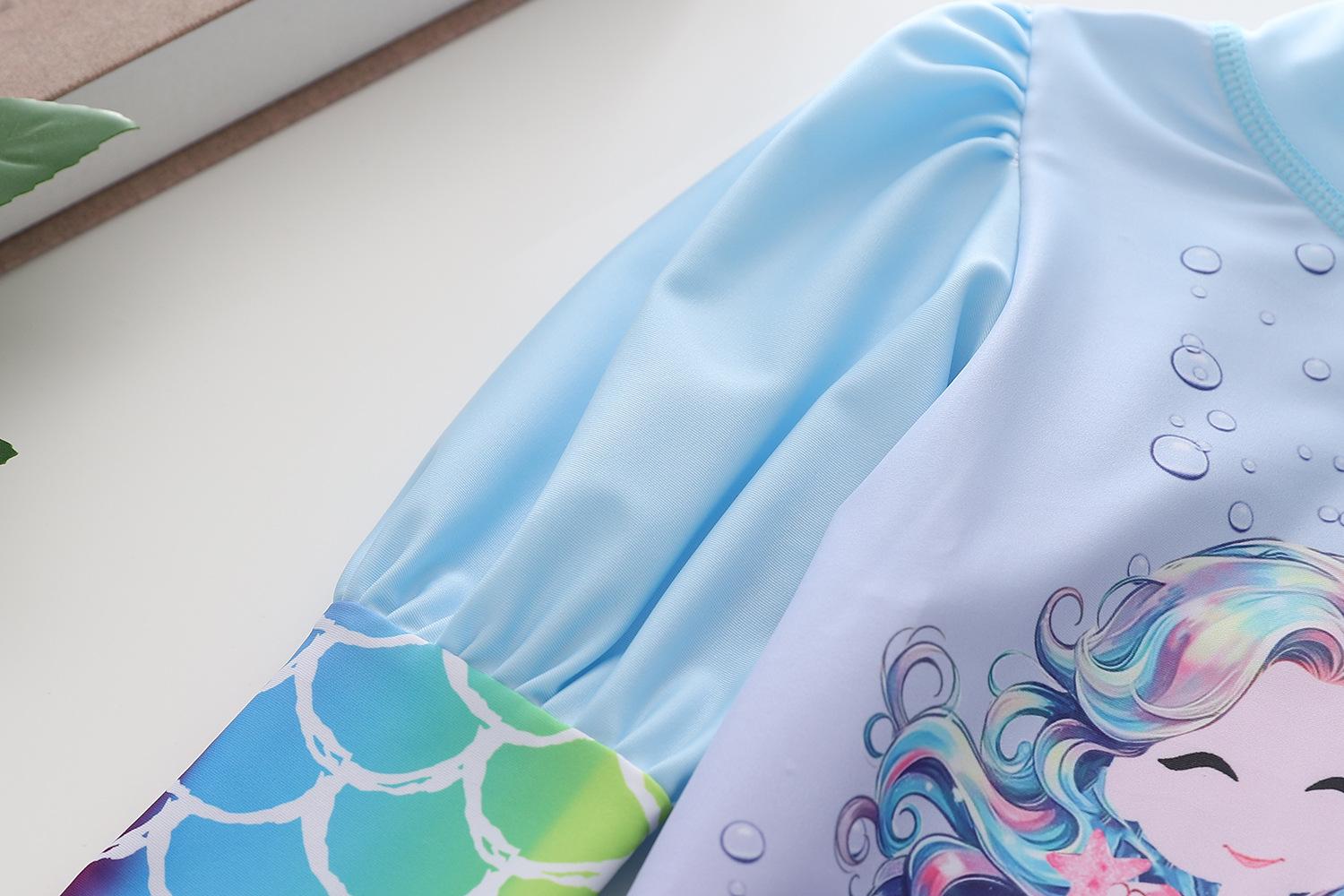 2024 Novos trajes de banho infantis para meninas Trajes de banho sereia Menina Bebê Manga comprida Pequeno Médio e Grande Maiô infantil dividido