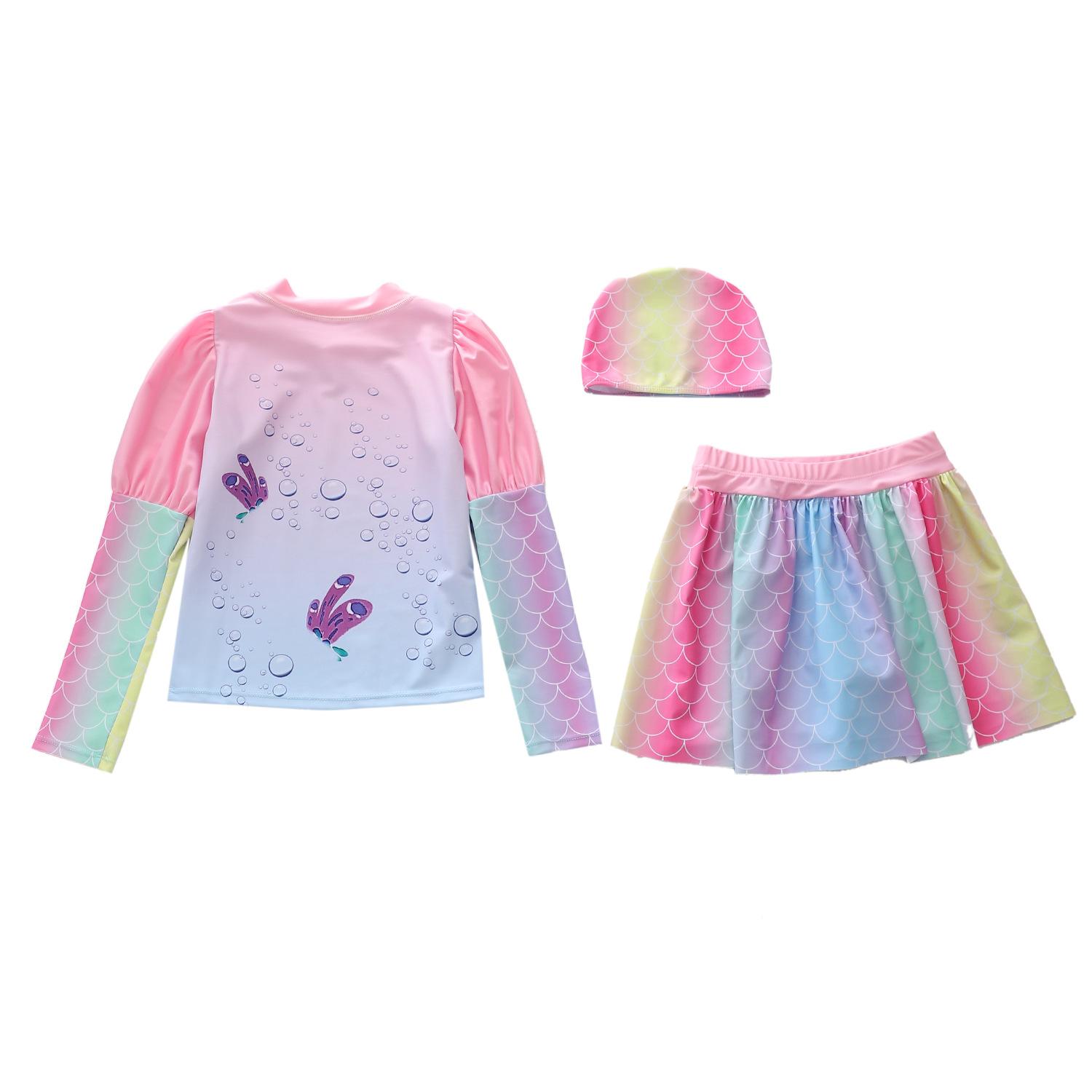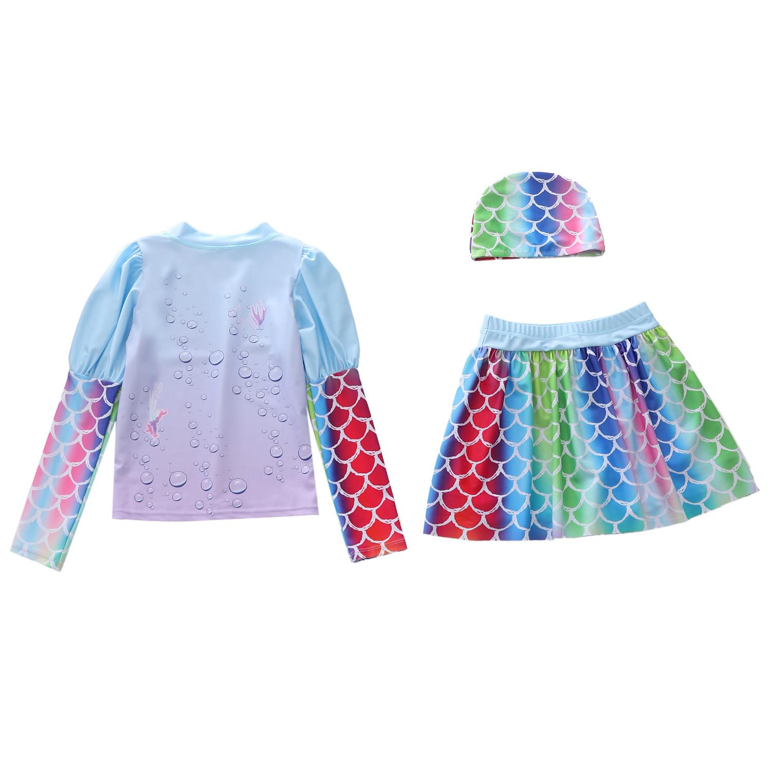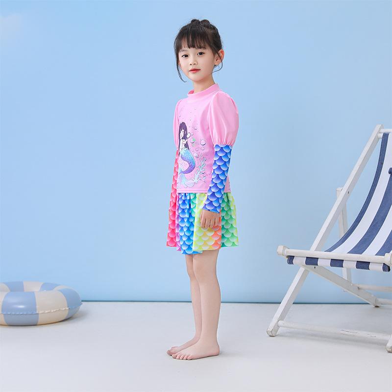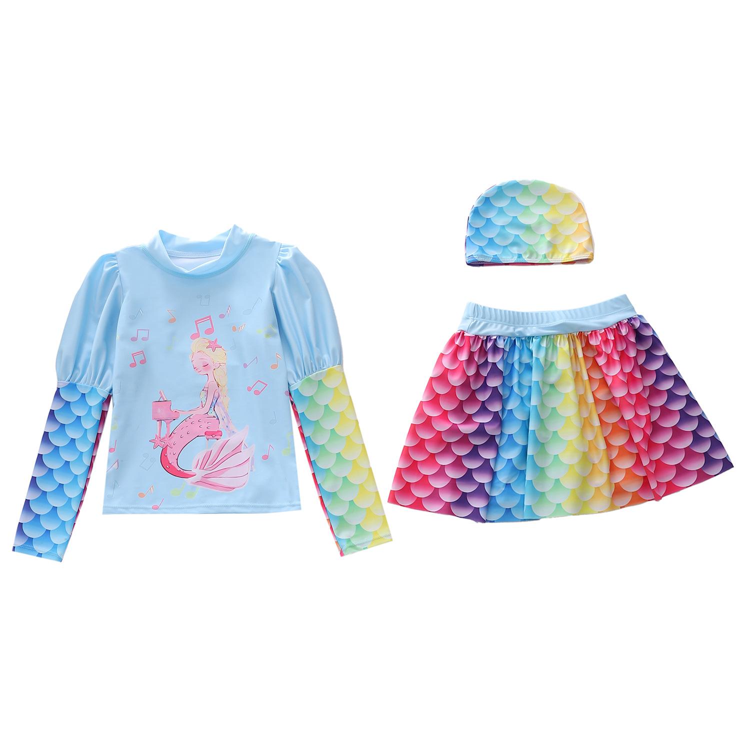 2024 Novos trajes de banho infantis para meninas Trajes de banho sereia Menina Bebê Manga comprida Pequeno Médio e Grande Maiô infantil dividido