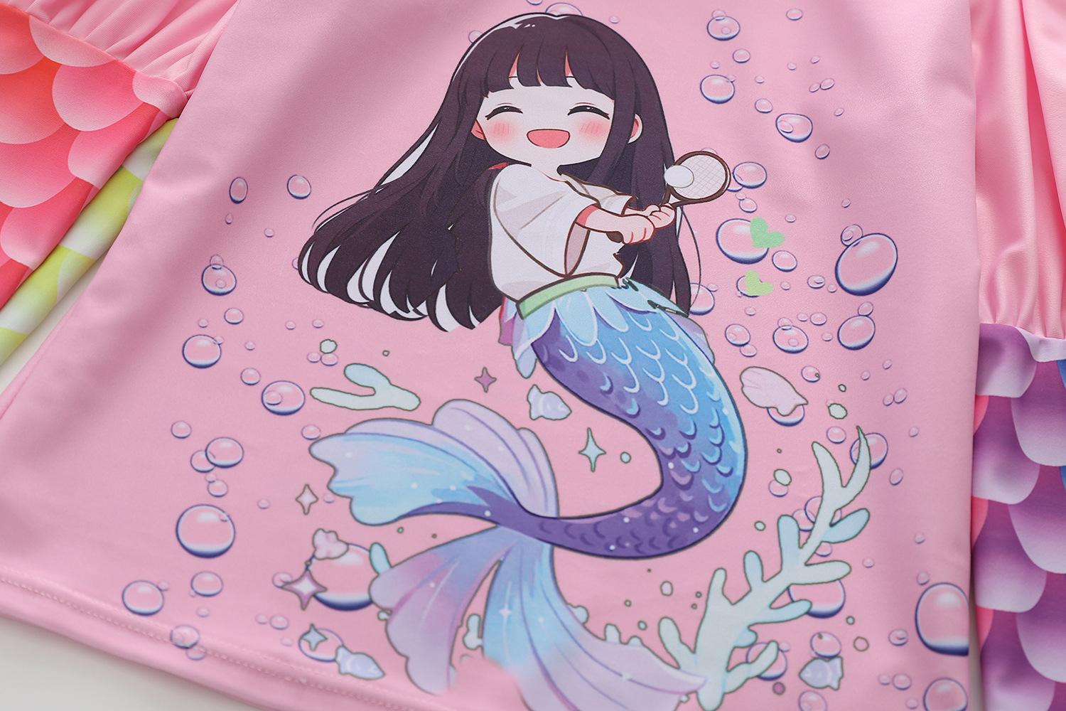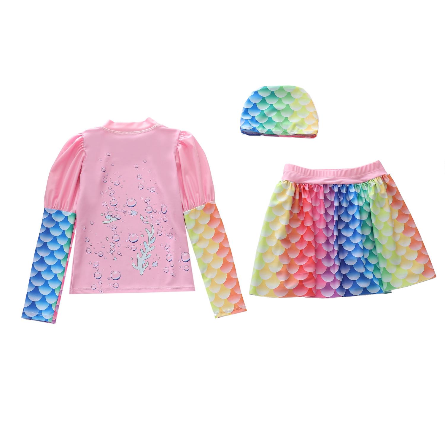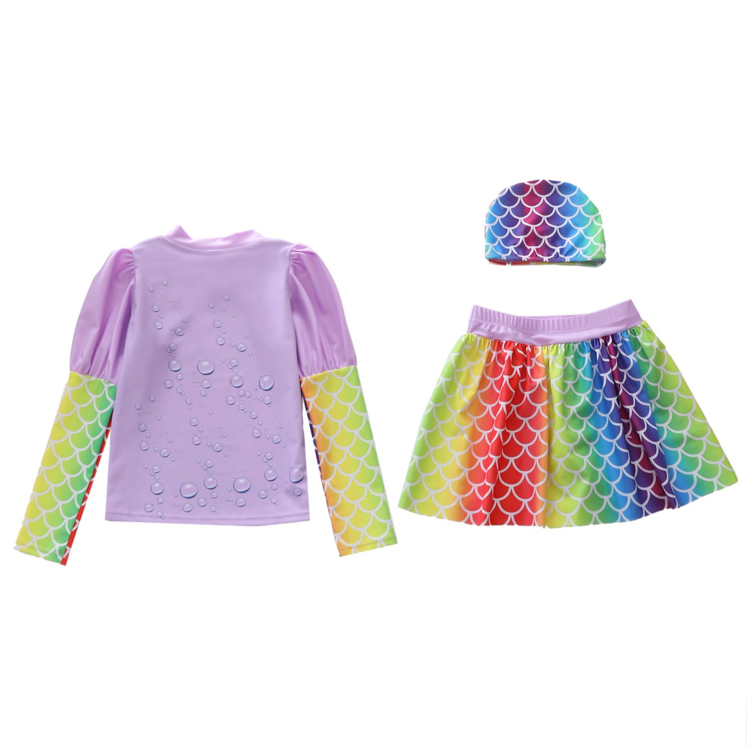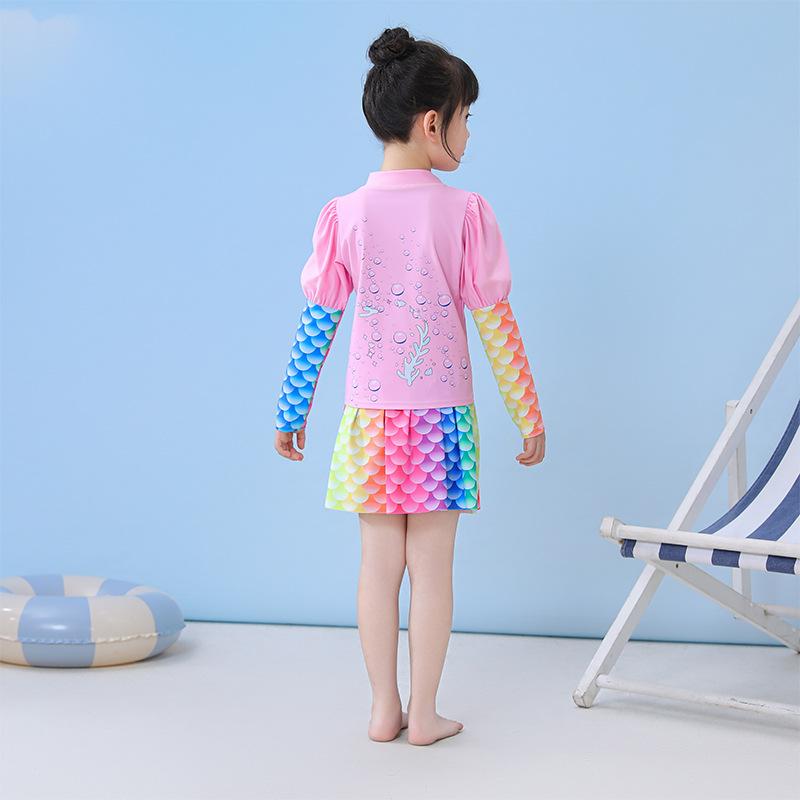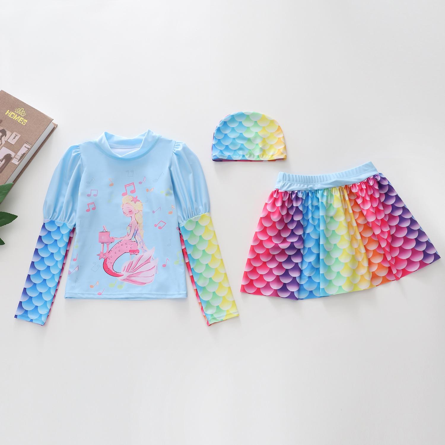 2024 Novos trajes de banho infantis para meninas Trajes de banho sereia Menina Bebê Manga comprida Pequeno Médio e Grande Maiô infantil dividido