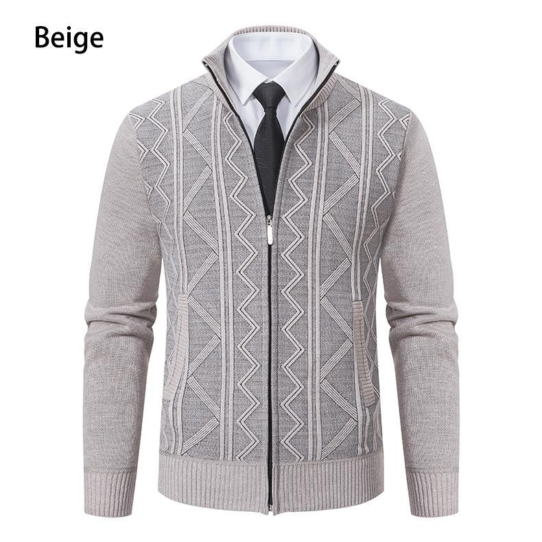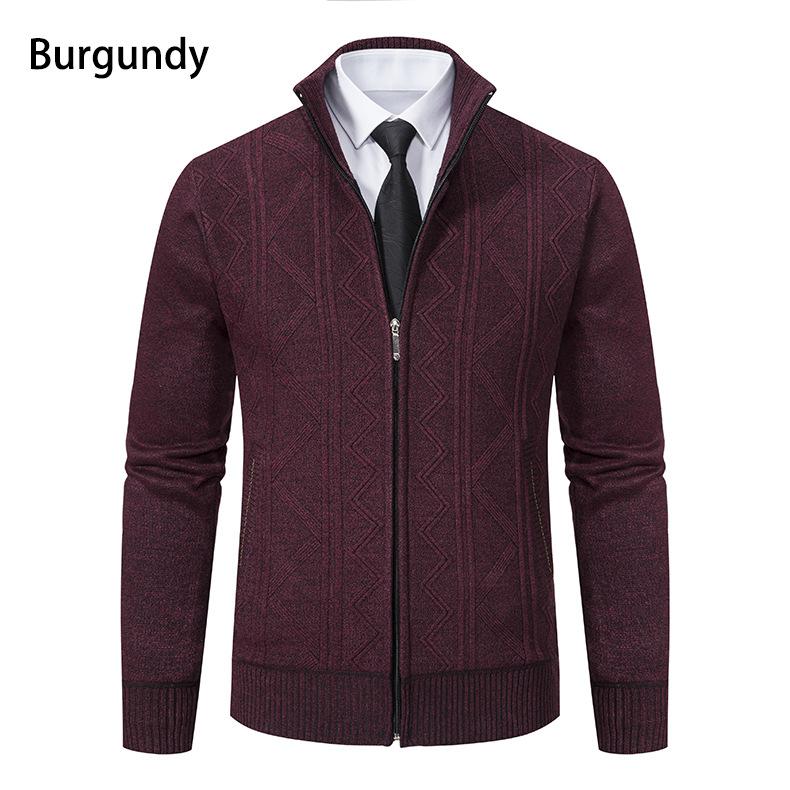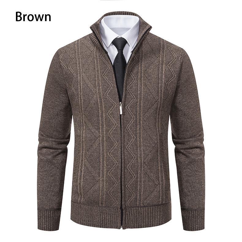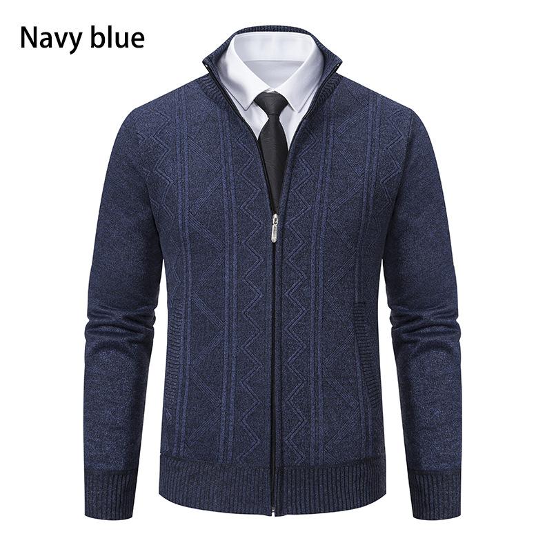 2024 outono e inverno novo masculino forrado de lã suéter suéter cardigan casaco com zíper gola suéter casual moda masculina